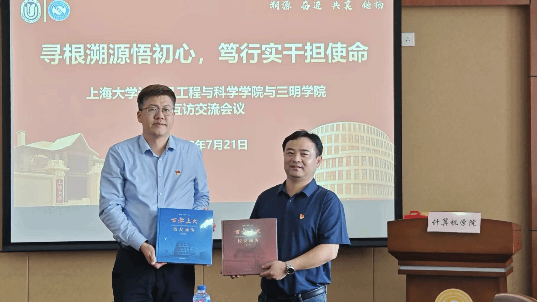 在计算机学院1104会议室举行了党课学习及交流会议。会上,朱宏涛代表学院党委对三明学院一行表示了热烈欢迎。随后,党校研究岗主管牛广华以“学习新党章 贯彻落实党的二十大精神”为主题为在座的师生讲授了一堂生动深入而又别开生面的党课,带领老师们与同学们重温党的历史,体悟新党章的深刻内涵。在接下来的座谈交流中,双方师生回顾了沪明合作的源远流长,并就深化党的创新理论学习、推动双方互访合作等展开了热烈讨论。座谈结束,朱宏涛向三明学院师生赠送计算机学院纪念品并合影留念。