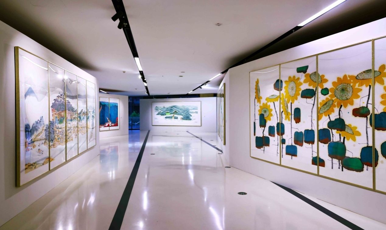 天趣私享荟是由影视、绘画、书法、瓷艺、影视、艺术延伸品和论坛交流六个部分组成。不仅有陈家泠先生的“新水墨”代表作《清荷》《西湖景色》和《清香》,不容错过的精彩看点还有鲜少展出的《花鸟鱼虫》系列,以及陈家泠先生打破传统观念,将陶瓷从实用器变成艺术载体,将陶艺和绘画艺术相糅合,让人耳目一新的“石榴阵”等新作,几十只形色各异的陶瓷石榴组成的“石榴阵”,寓意多子多福,吉祥喜庆。