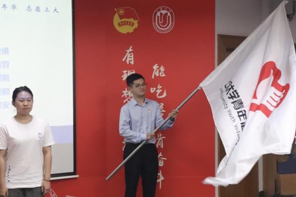旗帜引领方向,精神凝聚力量。迎新志愿者领队周俊儒、校学生会金倍羽、本科生党员服务队张颐熙、上大蓝宝梁佳颖、新生服务社柴亦安等志愿者代表上台,校党委常委、副校长聂清老师向志愿者代表授旗。授旗仪式后,全体志愿者庄严宣誓,铮铮誓言展现了志愿者们用爱迎新,热情服务的决心与信念。
