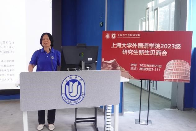 英语系主任张建琴、日语系主任赵莹波、法语系主任王文新分别向2023级研究生新生们表达了热切的欢迎。三位老师先是介绍了嘉定校区和专业师资状况,并分别从专业出发对新生们提出了自己的建议和期望。