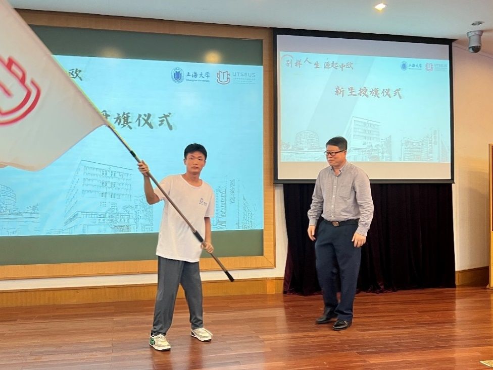 在院旗交接环节,刘建勇书记将导生手中的院旗,庄重地交到了2023级新生代表潘乐天同学的手中,潘乐天同学接过院旗,奋力挥舞,在灯光的映照下,院旗闪烁生辉。2023级的新生们将在院旗的指引下正式跨入中欧的大家庭,成为中欧学院的一份子。这面院旗不仅是象征,更是一种使命。作为新一届中欧学子,他们将为学院的荣耀和发展而努力,扛起学院的使命,勇往直前。这个庄重而又激情的仪式,铭刻在每位新生的心中,将伴随着他们整个大学生涯,成为他们前行的力量源泉。