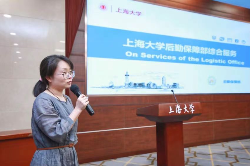 后勤保障部党委副书记张萍以《诸侯快讯入口官网后勤保障部综合服务》为题,从八个方面详细介绍了其部门的职能定位,以及为师生提供的一系列校园服务,从住宿到餐饮,从办公会议场所到校车路线,从医疗服务到安全管理,逐一进行了针对性讲述。