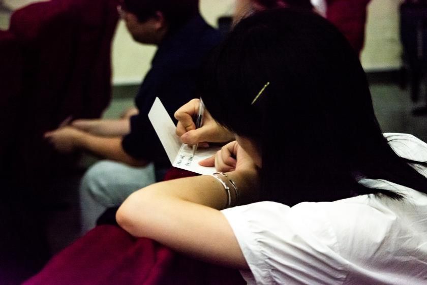浩瀚星海,我们渺小若尘埃,缘分却然后我们在此相识,日语笔译王旭同学为大家带来了歌曲《光年之外》、《另一个童话》。同时,现场工作人员为大家发放明信片,同学们在“时间胶囊”上写下期许,共同展望研究生生活。