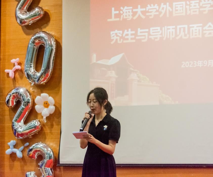 导师见面会结束后,外国语学院2023级研究生迎新晚会正式开始,本次晚会由2023级法语笔译刘童同学主持。
