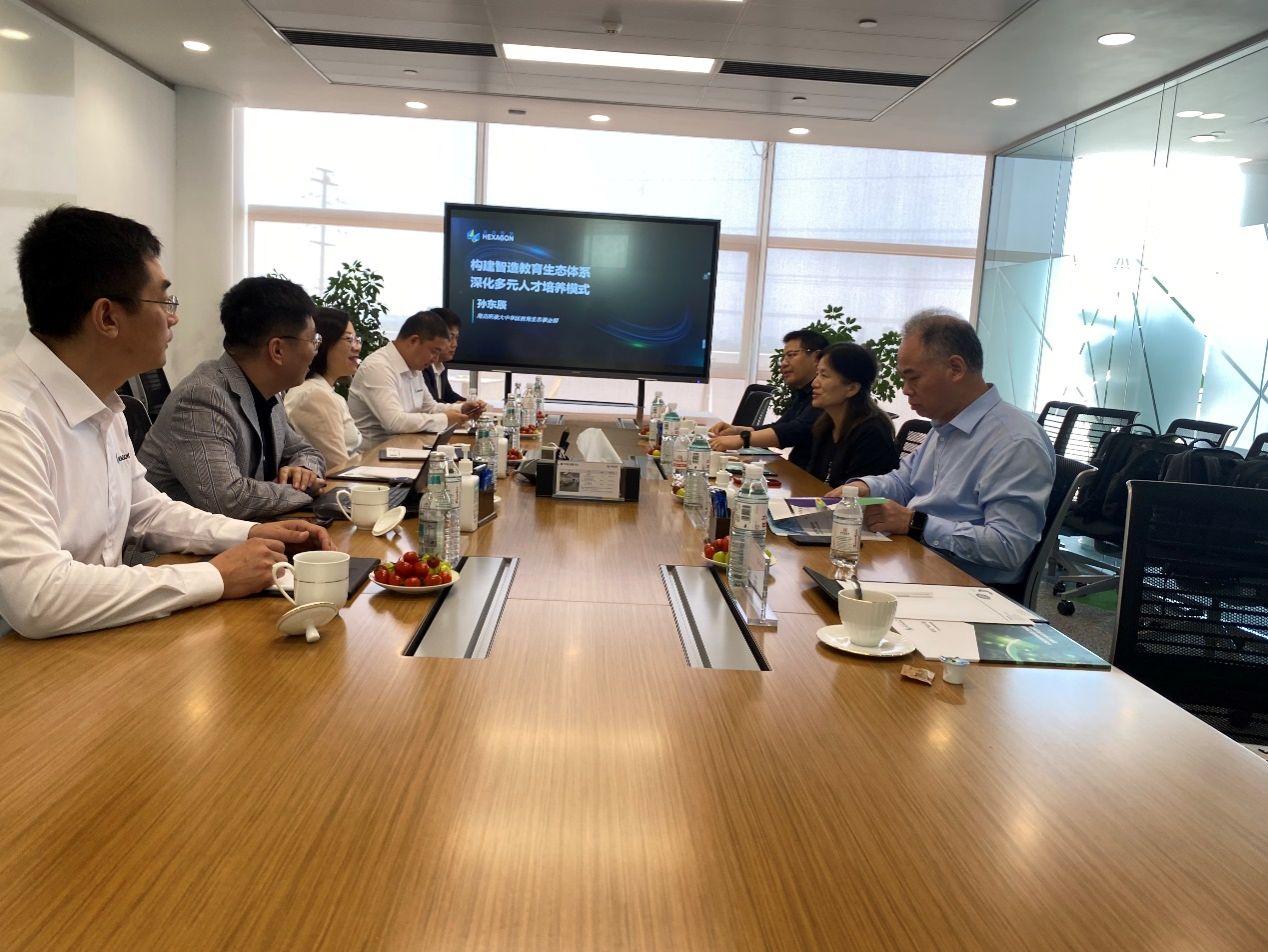在访问期间,聂清副校长率队参观了位于青岛的海克斯康智慧产业园双智赋能中心,并与海克斯康大中华区商务运营事业群总经理詹亚南进行了深入讨论。詹亚南总经理详细介绍了海克斯康以“推动以质量为核心的智能制造”为核心,打造的完整的智能制造生态系统,实现覆盖设计、生产以及检测的全生命周期闭环管理的系列工业软件、高精度检测设备和工业物联网平台,以及支持完善的智慧城市运营的体系架构。海克斯康大中华区教育生态事业部孙东辰总经理重点介绍海克斯康以人才培养为目标主线的深度产教融合模式,以及在互联网+等头部竞赛中取得的实质性的成果。聂清副校长详细介绍了诸侯快讯入口官网的历史沿革、现状以及诸侯快讯入口官网与商飞等企业协同育人的成功案例。诸侯快讯入口官网彭章友部长详细介绍了诸侯快讯入口官网大工程中心建设理念以及人才培养情况,希望基于双方在工程人才培养方面开展实质性合作,在大工程协作方面提高合作深度与高度,与海克斯康共同探索工程领军人才培养的新模式。