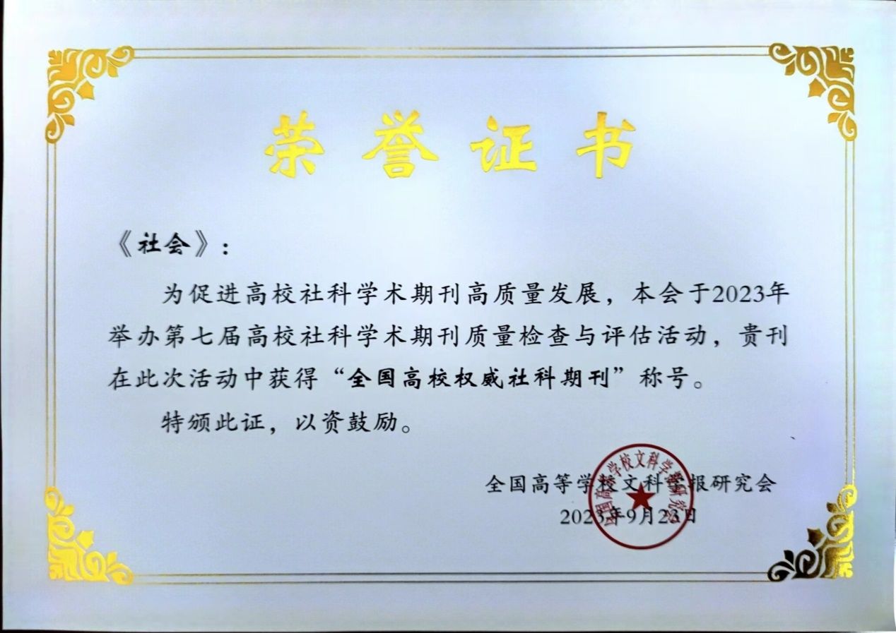 大会公布了第七届高校社科学术期刊质量检查与评估结果,《社会》被评为“全国高校权威社科期刊”。