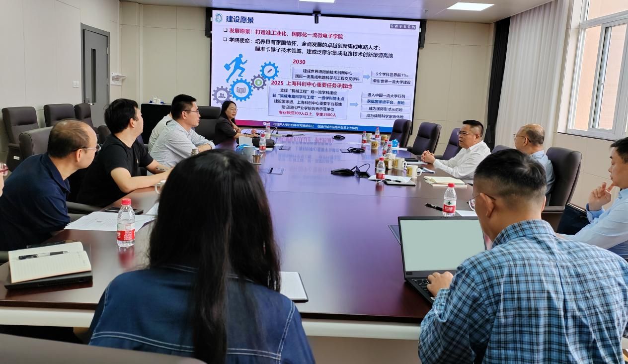 张建华首先代表微电子学院对王从春副校长的调研表示热烈欢迎,并从微电子学院建设背景、建设基础、战略使命、建设进展、2023年重点工作等作了详细汇报。