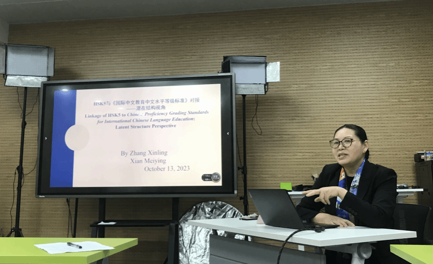 张教授以“HSK5与《国际中文教育中文水平等级标准》对接——潜在结构视角”为主题,包括研究背景、文献综述、研究方法、研究结论和分析结果等方面,阐述了如何从潜在结构的视角出发让二者有效对接,也是国际中文教育行业教师们共同探寻的课题。