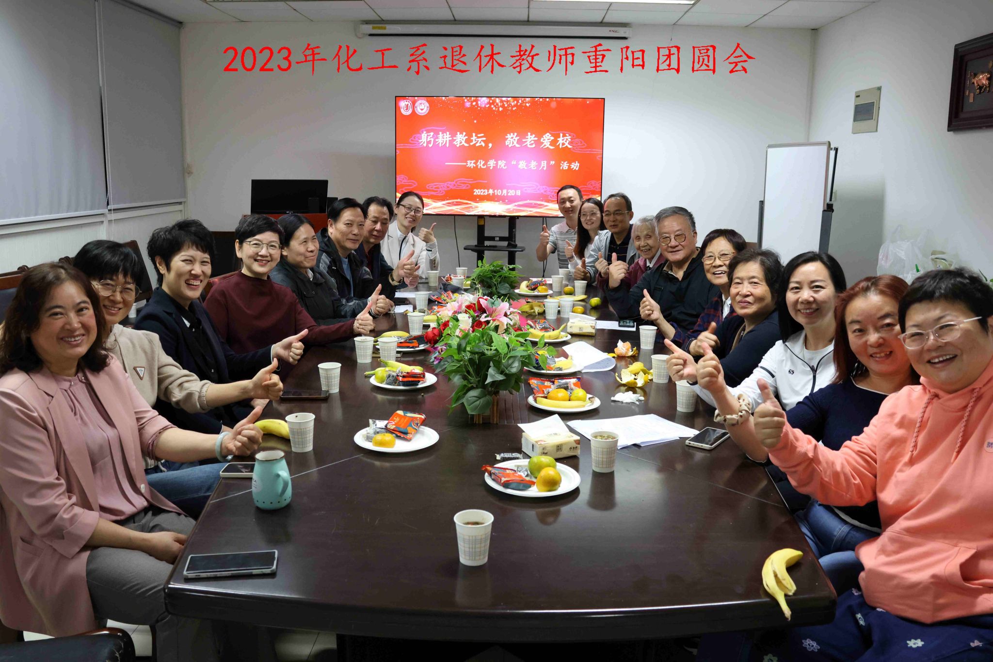 常怀饮水思源之心、常怀敬老之情,是我们中华民族的美德。老教师们在教学、科研、管理、服务各个岗位上的无私奉献为学院、学校的发展打下了坚实基础。环化学院上下将接过老教师们的“接力棒”,认真贯彻落实党的二十大精神,继续发扬“自强不息,道济天下”的校训精神,致力成为新时代的“大先生”,勇当服务国家的“排头兵”,共同携手创造环化学院更加辉煌的明天。
