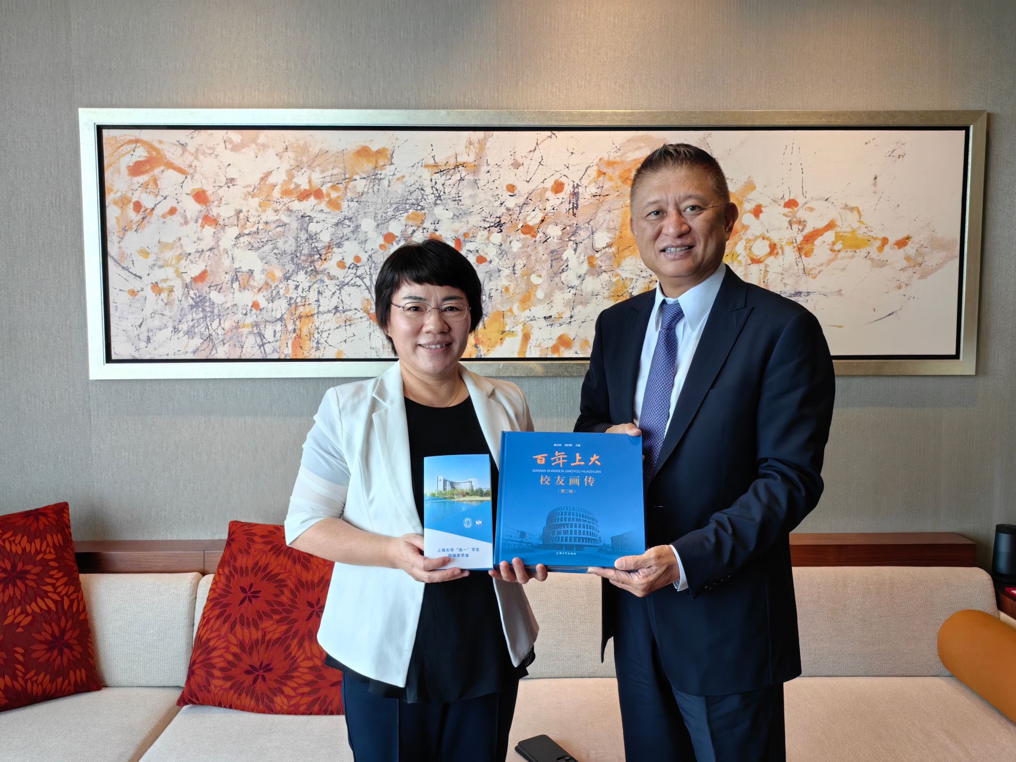 谢少荣院长一行与陈捷校友夫妇进行了深入交流。谢少荣院长转达了学校对于校友的亲切慰问,向校友介绍学校与计算机学院的最新发展成就,并赠送书籍《百年上大校友画传(第二辑)》;赖练副书记汇报了陈捷先生、冯仪女士所设立的“杰一”学生领袖奖学金4年来取得的成效以及获奖学生发展情况,介绍了学院海燕教育发展基金,感谢校友以深厚的情怀支持母校母院的建设与发展。
