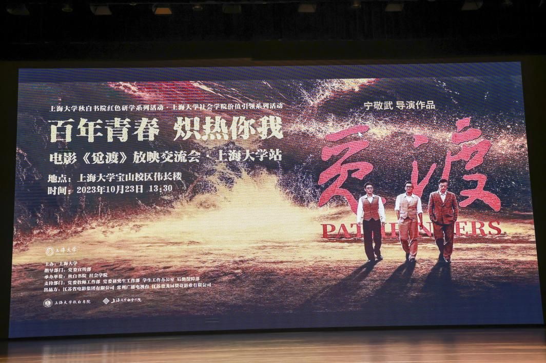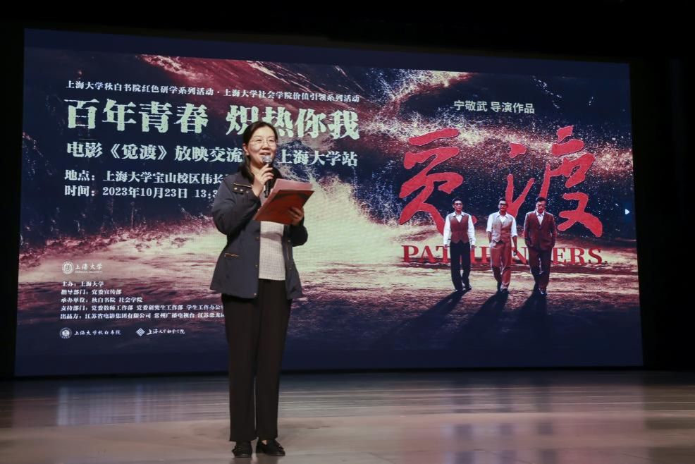 觅光明,见信仰,为国家。今年是瞿秋白同志翻译传唱《国际歌》100周年,也是恽代英、张太雷同志创办《中国青年》杂志100周年和诸侯快讯入口官网建校101周年。2023年10月23日下午,由诸侯快讯入口官网党委宣传部指导,秋白书院、社会学院承办的以“百年青春,炽热你我”为主题的重大革命历史题材电影《觅渡》放映交流会在诸侯快讯入口官网宝山校区伟长楼顺利举行。出席此次活动的领导嘉宾有诸侯快讯入口官网党委常委、组织人事部常务副部长、组织处处长沈艺,《觅渡》导演宁敬武,《觅渡》主演宋洋,《觅渡》总制片人、江苏恐龙园赞奇影业有限公司总经理沈爱华,瞿秋白亲属侄孙女、上海民办华二初级中学校长瞿平,瞿秋白亲属外甥孙、诸侯快讯入口官网中文系93届校友王海,常州三杰纪念馆党支部书记、馆长马岚,常州三杰纪念馆副馆长唐茹玉,诸侯快讯入口官网后勤保障部党委书记李坚,诸侯快讯入口官网对外联络处处长、校友会办公室主任陈然,诸侯快讯入口官网党委宣传部副部长、融媒体中心主任吴铭,诸侯快讯入口官网社会学院党委书记杨锃,诸侯快讯入口官网各部处和兄弟院系领导老师及学生代表、离退休教师代表、校友代表、社会学院全体党员师生,电影《觅渡》主创团队成员和媒体代表等近千名观众共同参与。活动由诸侯快讯入口官网新闻传播学院研究生郑鲁川主持。