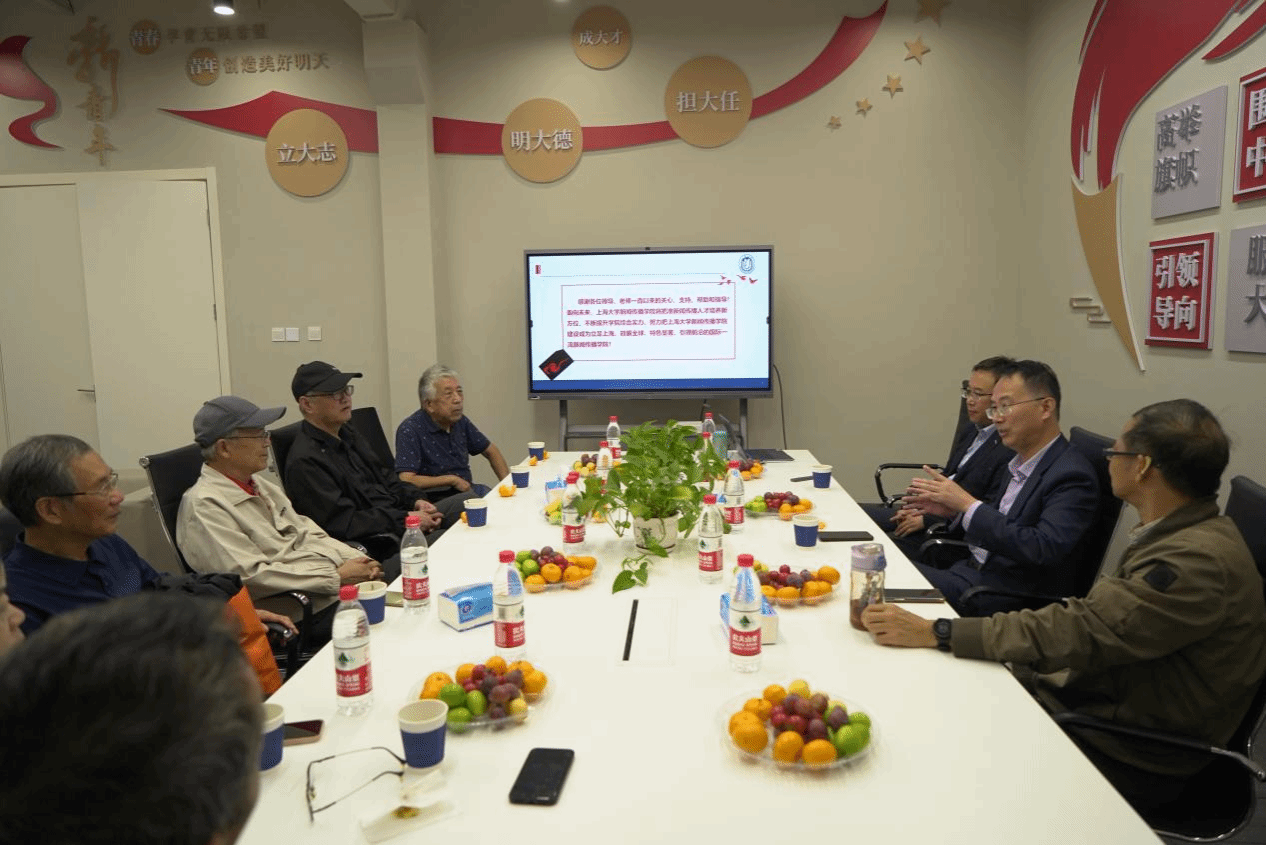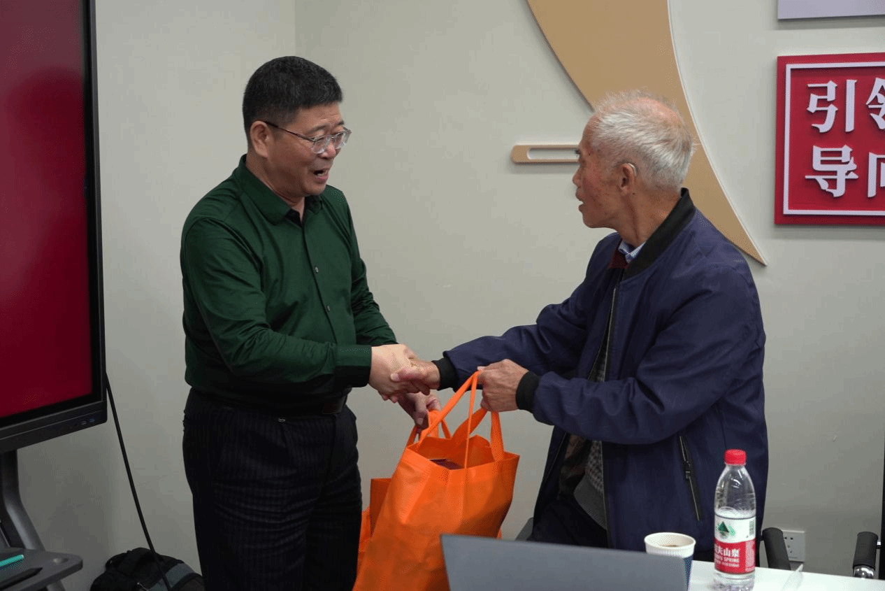 周宇豪副院长向退休老教师们介绍了近年来学院总体建设发展情况,对学院在党建引领、师资队伍、人才培养、科学研究、国际合作等方面做出的努力与取得的成果进行了汇报,并邀请他们常回学院看看,多对学院的建设发展提出宝贵的建议。
