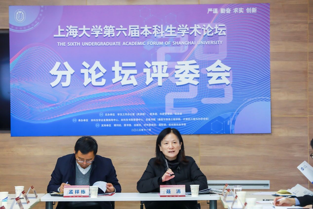 校党委常委、副校长聂清发表讲话。她首先代表学校党委向各学院、各书院和相关部门,特别是承办单位宏嘉书院表示衷心的感谢,感谢各位老师对本科生学术论坛和人才培养工作的倾力支持,并表扬和鼓励了参与论坛的同学们。聂校长强调,评审不是最终目的,如何激发同学们的学术热情,如何提升同学们的论文撰写水平和学术能力以及如何培养学生的创新意识才是本科生学术论坛的意义所在。聂校长指出今年是百年上大重新启程之年,也是审核评估之年,本科生学术论坛既是给同学们提供一个创新意识、创新能力增长的平台,也是为探索新时代高质量本科教育如何持续优化培养体制机制持续进行的一种探索。