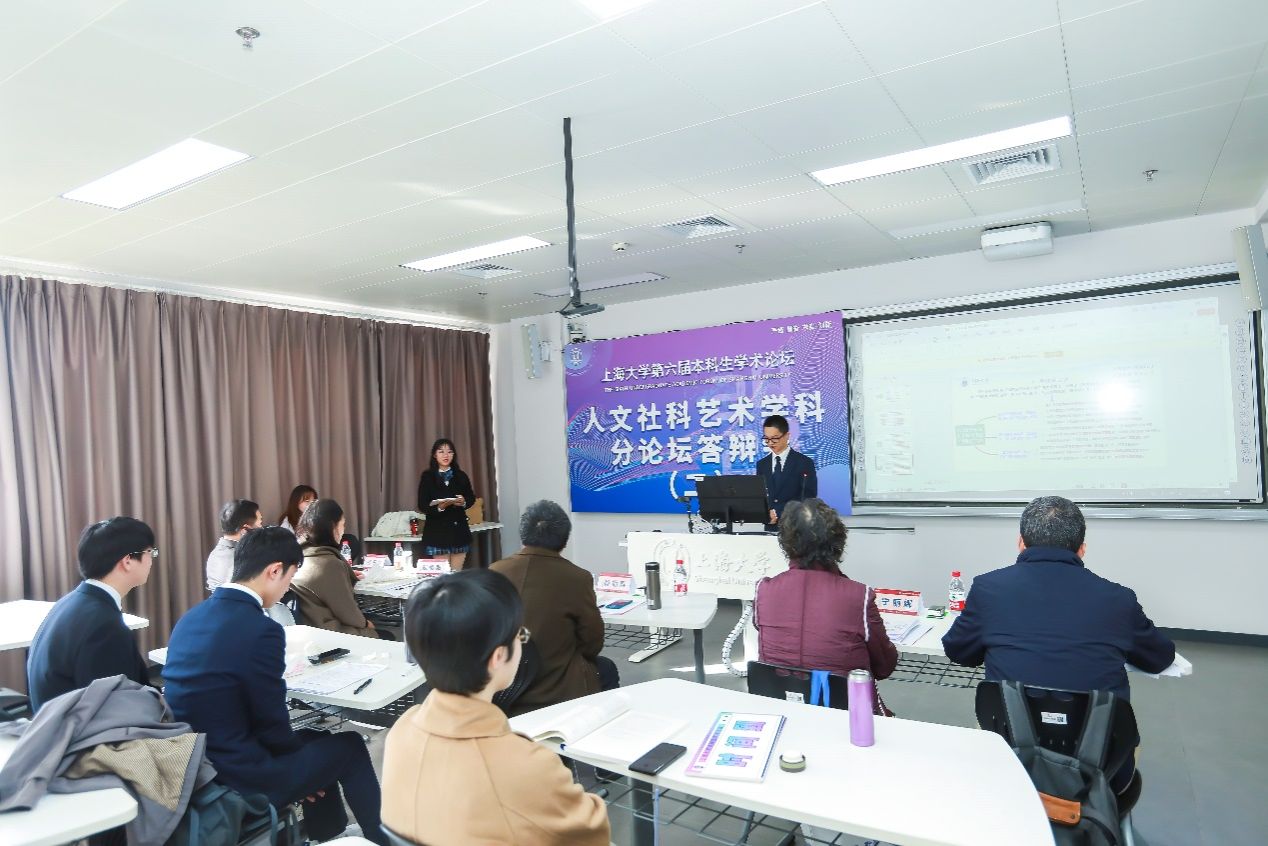 人文社科艺术(一)分论坛的评委由新闻传播学院副院长周宇豪教授,上海电影学院徐文明副教授,社会学院贾文娟副教授,音乐学院李芸副教授,上海美术学院陆丹丹副教授,新闻传播学院易红发副教授组成。来自青云书院、秋白书院、泮池书院、闳约书院的27位同学进行了答辩,论文覆盖了包括中国语言文学、新闻传播学、历史学、哲学、艺术学、思想政治教育学在内的多个学科和研究方向。