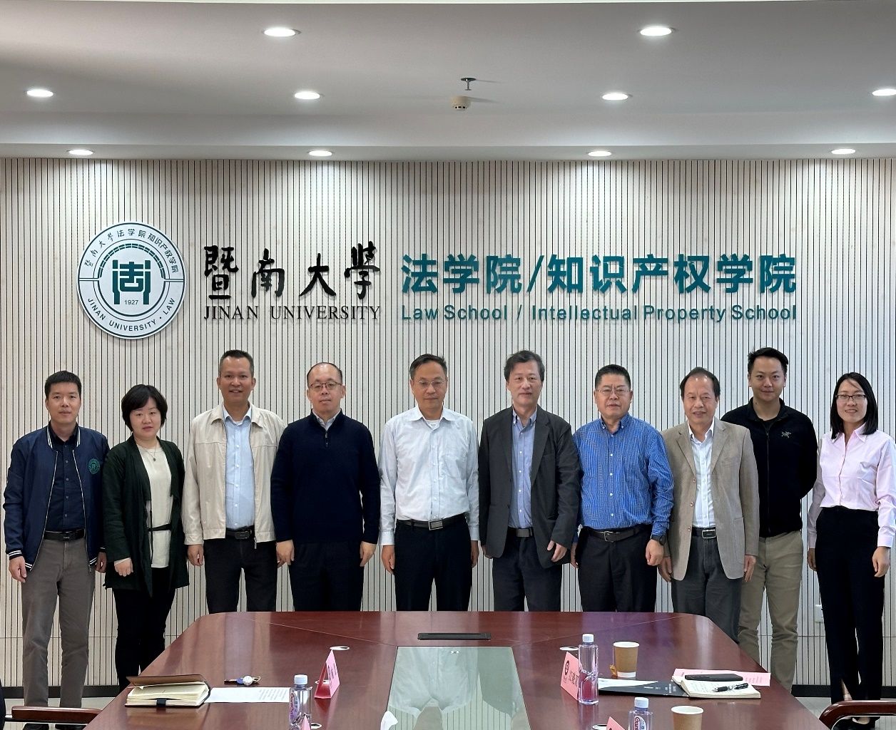 11月17日上午,法学院党委书记徐国明、申报博士点工作专班主任李清伟、学术分委员会主任兰跃军、副院长袁曾和办公室主任江晓双一行赴暨南大学法学院/知识产权学院调研。暨南大学法学院/知识产权学院党委书记黄建新、副院长李响、党委副书记李勇标、研究生管理办公室主任喻慧、学生党总支副书记梁森热情接待并在暨南大学番禺校区知识产权大楼709会议室与上大法学院一行座谈交流。