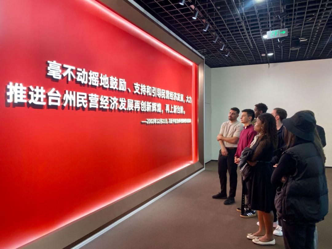 下午,调研团一行至台州民营经济展示中心考察,经过实地走访和参观学习,让国际学生对台州的民营经济环境有了进一步了解,特别是对台州民间商贸的发展表现出极大的兴趣。