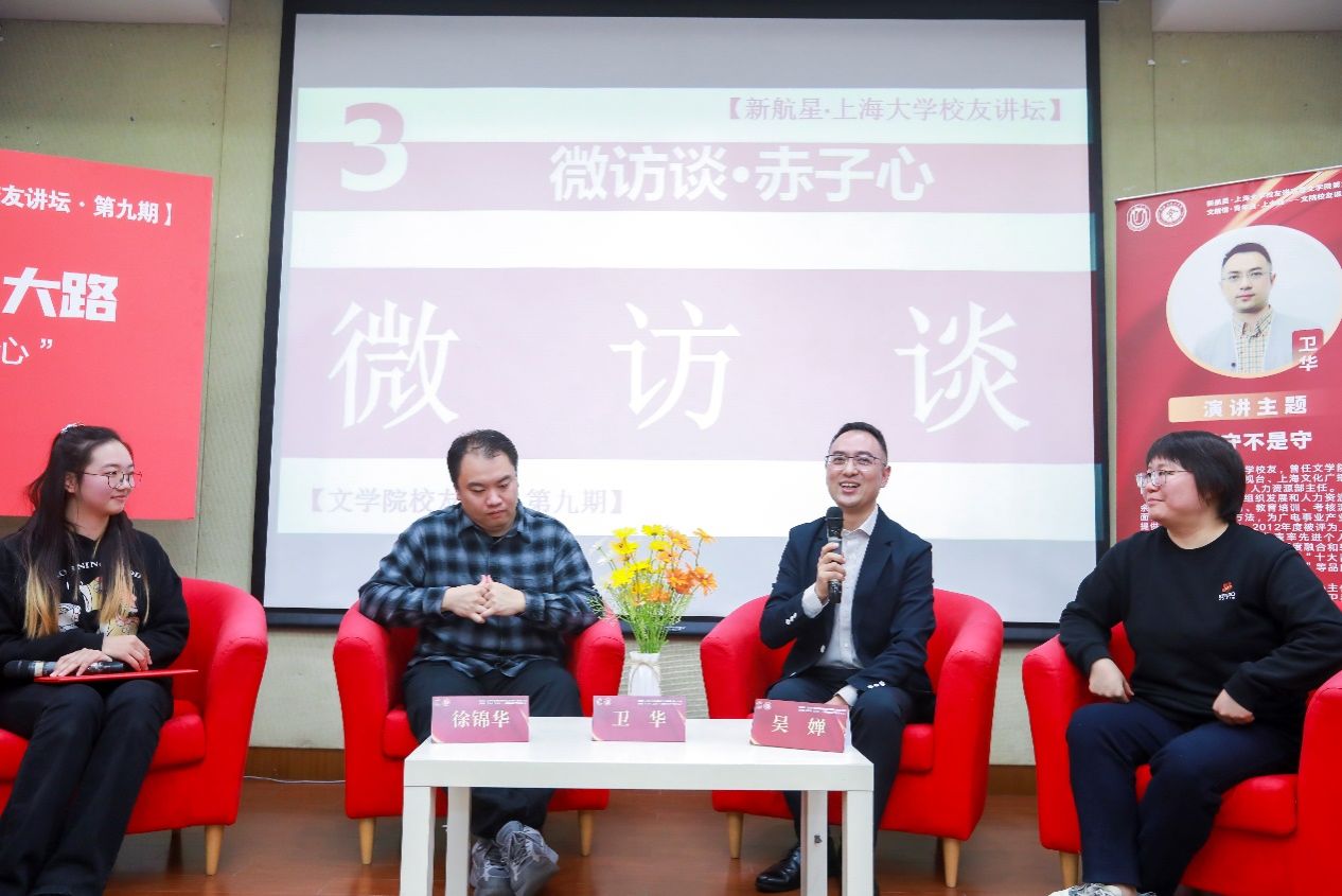金秋时节,繁花似锦。为凝聚文院校友情谊,助力文院学子成长,11月19日下午,新航星·诸侯快讯入口官网校友讲谈暨文学院第九期校友讲坛,文院情·青年说·上大路——文院校友谈“不忘赤子心”在宝山校区东区蔡冠深讲堂顺利举行。
