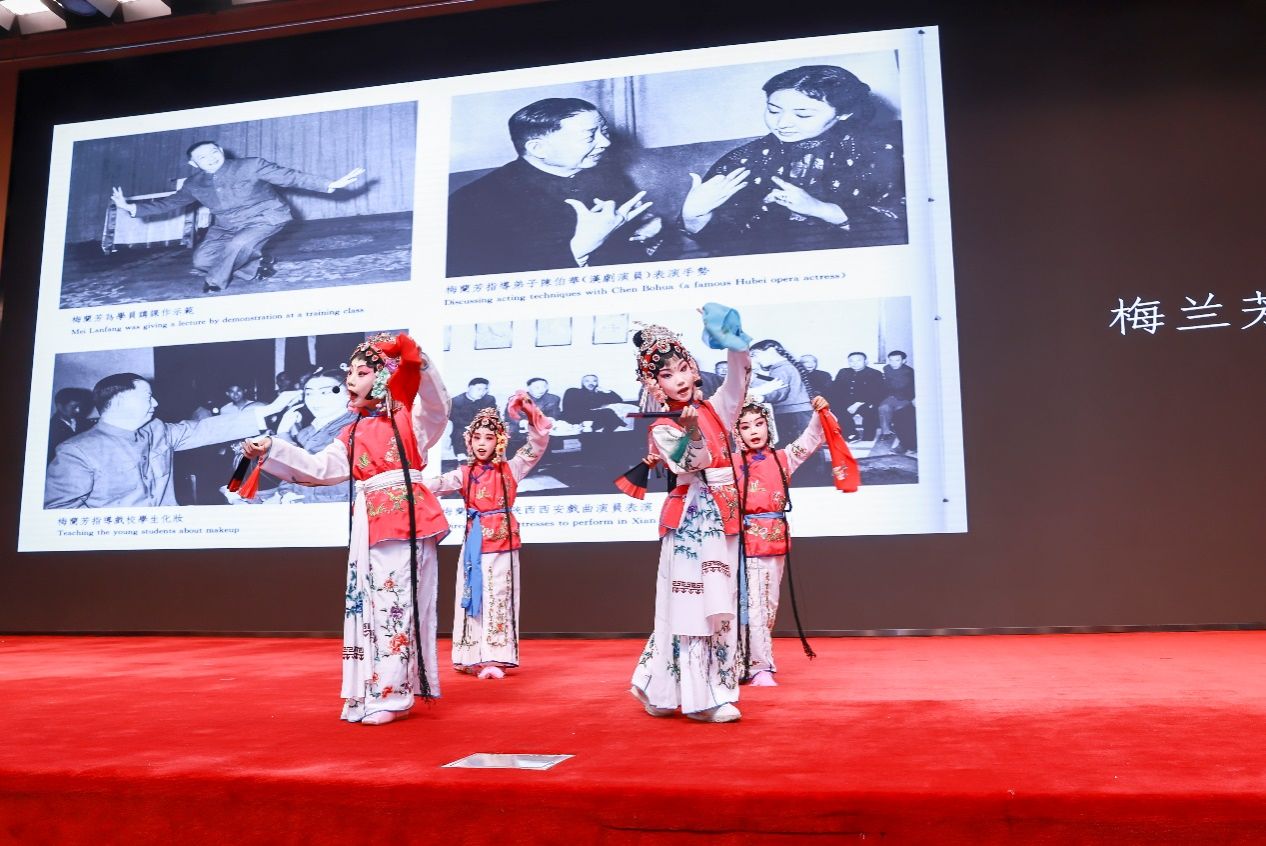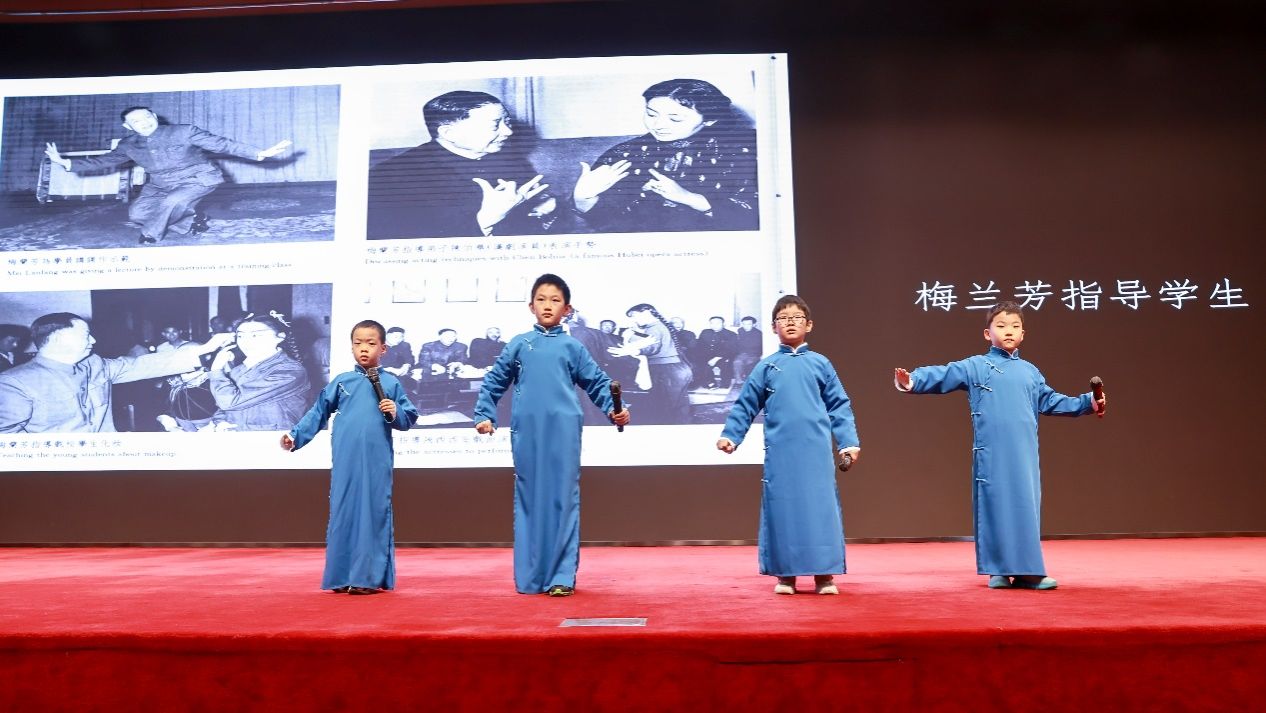 通过多媒体视频,师生合唱《醉太平》,梅兰芳原声录音,嘉宾表演《贵妃醉酒》『海岛冰轮初转腾』、《宇宙锋》、《麻姑献寿》『瑶池领了圣母训』,学生表演《追韩信》,梅派小演员表演《卖水》《三家店》,演出在演员合唱《梨花颂》的歌声中圆满结束。本次演出将精妙的京剧技艺编排成套,把内含的戏曲情感连缀成篇,灵活运用“中华优秀传统文化宝贵资源”,达成“以艺育人,以戏润心”的美育目标。