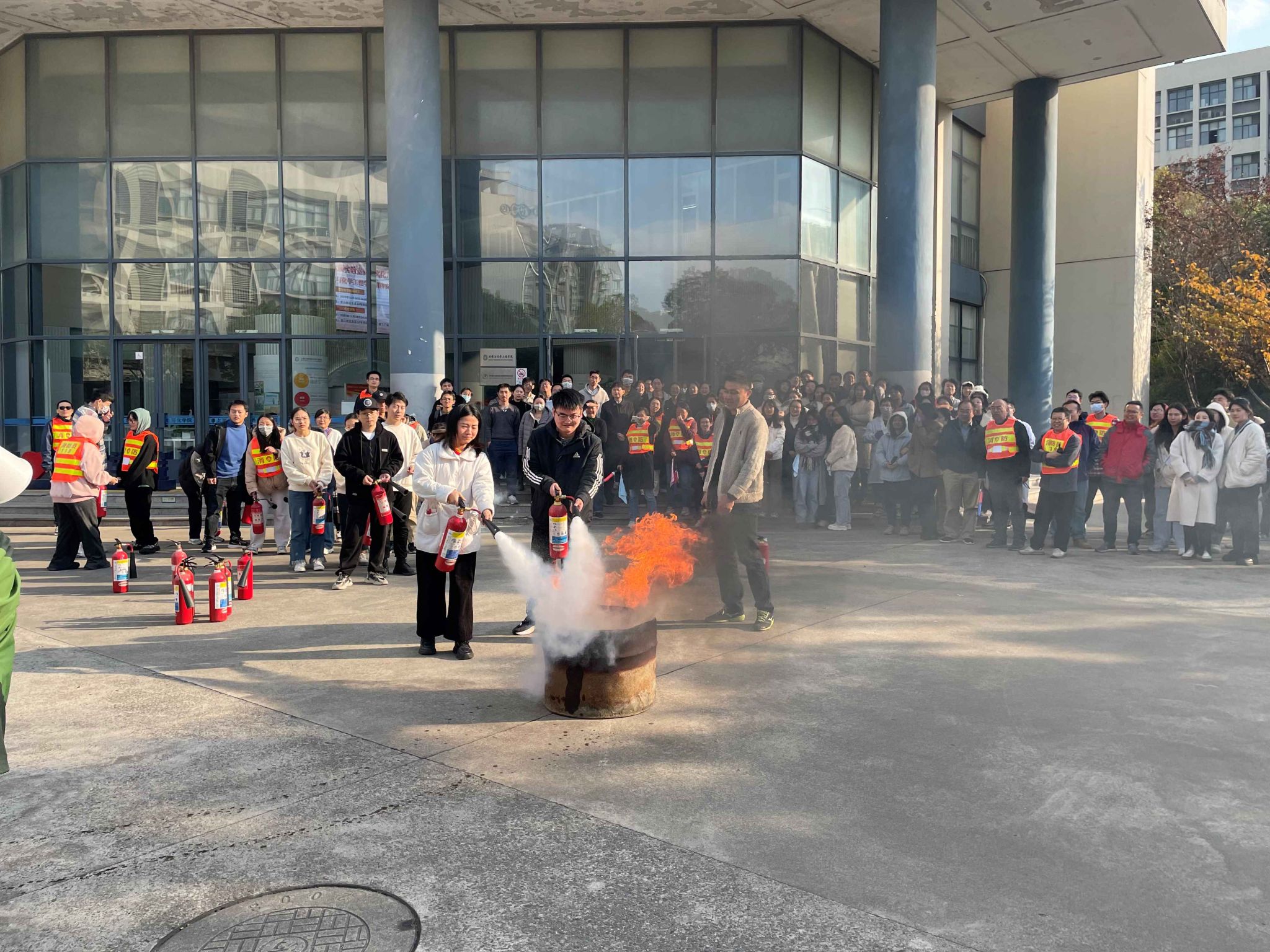 为进一步提高师生消防安全意识,提升应对突发事件的应变能力,在学校实验室安全文化月期间,11月24日,环化学院成功举办消防安全教育系列活动。系列活动共包含消防安全教育讲座、模拟火灾安全疏散演习和模拟灭火演练三个环节,约400余名学院师生积极参与其中。环化学院党政领导班子成员、实验设备秘书及各系所安全员老师参与组织本次活动。