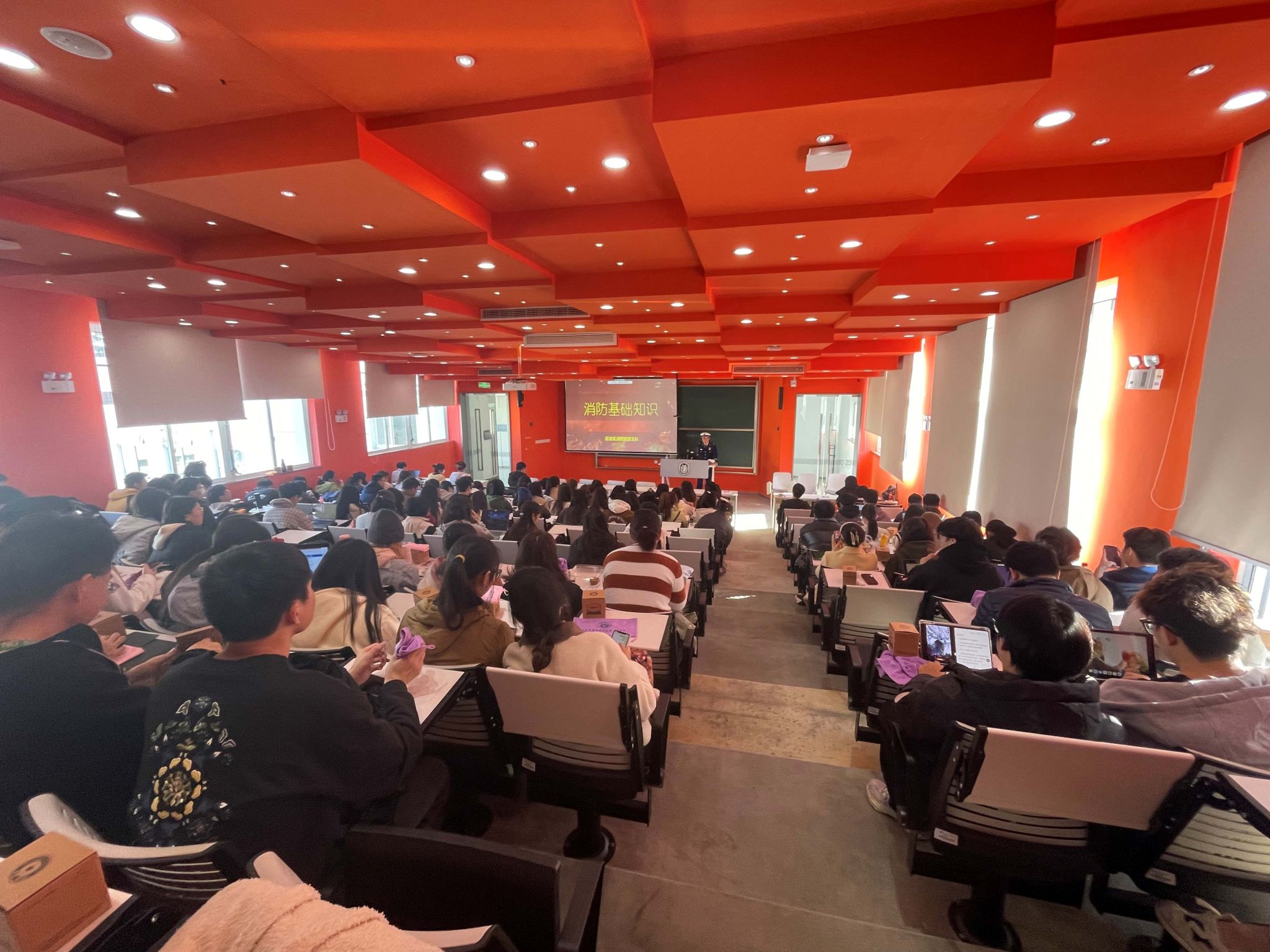 24日上午,嘉定区消防救援支队华亭消防救援站政治指导员王鑫在嘉定校区为学院师生带来了一场生动而有启发性的消防安全教育讲座。他深入浅出地介绍了火灾的危害性、常见火灾原因和预防措施,并详细解释了火灾发生时的自救逃生方法。通过图文并茂的案例分析和实际操作演示,使师生们对消防安全知识有了更深入的了解。