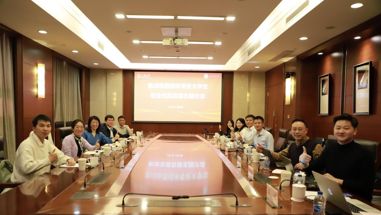 11月29日,为进一步厚植家国情怀,加强集成电路相关专业学生生涯发展教育,在学校招生就业处的指导支持下,微电子学院联合相关企业、兄弟高校、校内相关兄弟院系共同举行集成电路相关专业学生生涯发展主题沙龙。学校招生就业处副处长贺利,集成电路有关企业总监刘春芳、爱集微相关负责人赵深辉、上海交通大学航空航天学院党委副书记李魏,钱伟长学院党委副书记、副院长沈青松,通信学院党委副书记、副院长陈涛,学校招生就业处、校内相关学院辅导员等参加沙龙。微电子学院党委副书记、副院长袁铭主持沙龙。