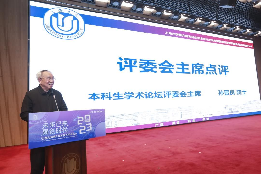 最后,孙晋良院士对第六届本科生学术论坛进行总结点评。他首先肯定了本届学术论坛,向获奖学生表示了热烈的祝贺,并对指导老师表达了感谢。他希望同学们一定要脚踏实地地去学习、去探索,打好基础,包括学习基础知识、学习他人的经验,在学术探索中增强创新能力。