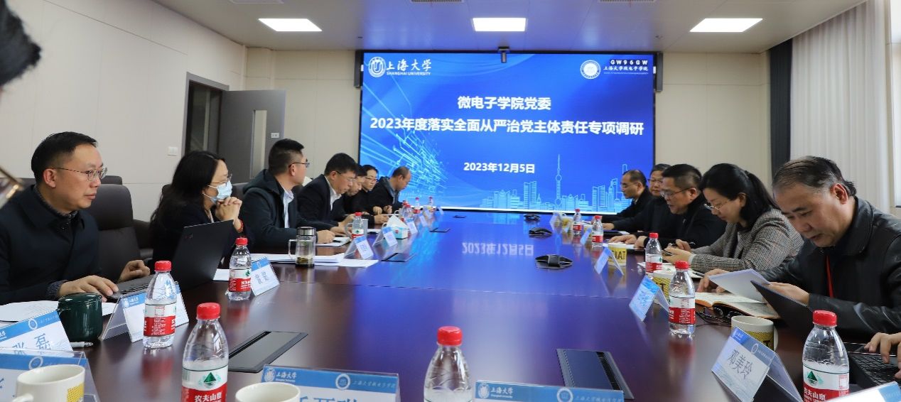 12月5日,校党委常委、副校长王从春带队赴微电子学院开展2023年度落实全面从严治党主体责任专项调研。校党委常委、组织人事部常务副部长、组织处处长沈艺,校党政办公室副主任凌长臣,校党委宣传部副部长、文明办主任何金伟,校纪委(监察专员办公室)派驻延长校区纪检员田先纲,校党政办公室党务科副主管邓美玲;学院党委书记郭纯生、院长赵建龙、执行院长张建华等领导班子成员及教师代表、学生代表等参加了调研座谈。调研组采取听取汇报、个别访谈、查阅资料等方式进行,全面了解微电子学院党委全面从严治党主体责任落实情况。座谈会由校党委常委、副校长王从春主持。