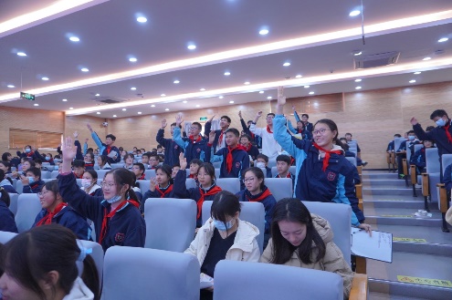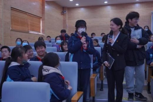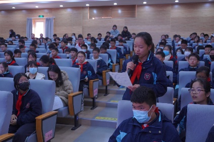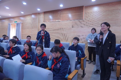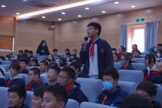 在问答环节中,同学们不但十分踊跃积极回答问题,而且每一道题目都能回答准确,尤其是在谈对宪法的认识和如何在日常生活中践行宪法的问题时,有的同学谈到践行宪法要从小事做起,在学习生活中首先要遵守学校手册,从小事上践行宪法精神;