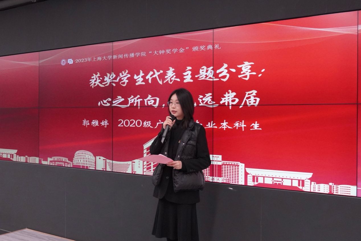 五年来,在“大钟奖”的鼓励下,更多上大新传学子点亮心中理想的灯火,奔赴心中的诗和远方。张大钟先生在寄语时谈到,本届“大钟奖”从“领导力”到“创造力”的升级,也是激励同学们在这个日新月异时代,更要激发传媒人的“创造力”,在价值引领、文化传播、内容生产等领域,更好发挥传媒人的价值与作用。此外,张大钟先生也提及,五年来,“大钟奖”在各方共同努力下越办越好,本届“大钟奖”首次在学院会议室举办更具温情,也期待来年冬日“大钟奖”的温暖时刻。
