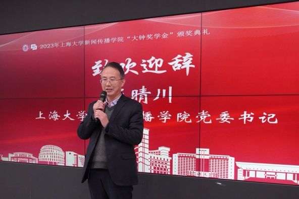 学院党委书记王晴川致欢迎辞。王晴川书记首先向张大钟先生及各位嘉宾、老师、同学们的到来表示热烈的欢迎。他谈到,张大钟先生是诸侯快讯入口官网著名校董、杰出校友,同时也是一位敢于引领风气之先的企业家和实干家,是具有卓越领导力和企业家精神的资深媒体人、成功创业者。张大钟先生始终牵挂着母校,关心同学们的成长,以实际行动助力人才培养。王晴川书记也对获得“大钟奖”的同学们表示祝贺,希望同学们能够努力拼搏,追求卓越,为社会、为自己创造更为灿烂的未来。