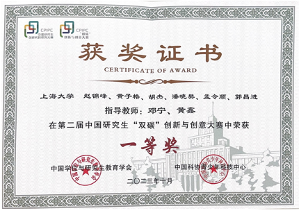 在导师的悉心指导与团队的协同努力下,非常荣幸地获得了中国研究生“双碳”创新与创意大赛一等奖。这个荣誉的背后,是无数日夜的辛勤付出和团队的无私支持。感谢导师的智慧启迪,感谢团队的默契配合,也感谢大赛的机会,让我们得以为双碳目标贡献自己的力量。我们将继续砥砺前行,秉承创新精神,为构建可持续低碳社会而努力奋斗。这个奖项激励我们更加坚定地追求环保创新,为未来的可持续发展贡献更多力量。再次感谢所有支持与鼓励我们的人,谢谢!