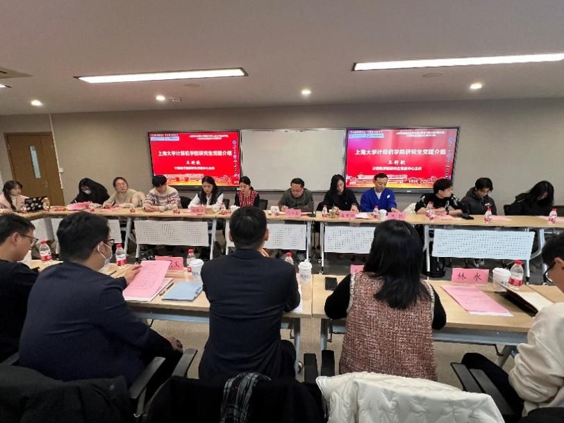 会议伊始,张博扬老师分别介绍了出席本次活动的嘉宾、领导老师及党员同学。随后,经济学院、计算机学院研究生党建中心主任夏唯伟、王明歌老师分别就学院党建中心近年来党员情况、发展概况、党建思路、特色党建活动和成果收获等进行介绍。
