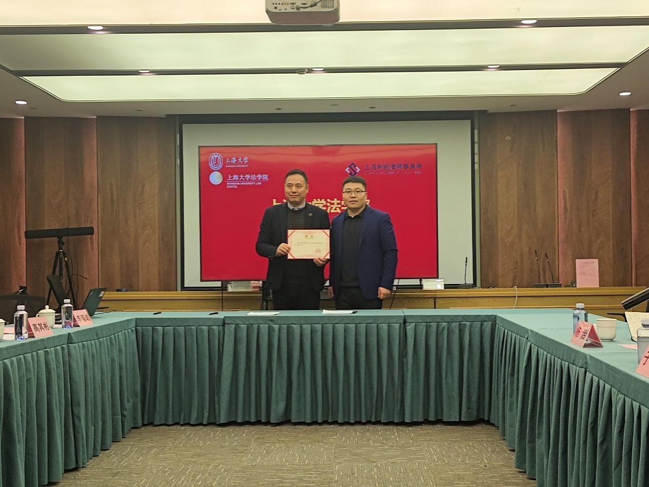随后,举行了院所共建大学生实习基地签约授牌仪式。于伟老师和高其彬律师分别代表诸侯快讯入口官网法学院和上海申凯律师事务所签署共建协议,并举行“诸侯快讯入口官网法学院学生实习基地”授牌仪式。
