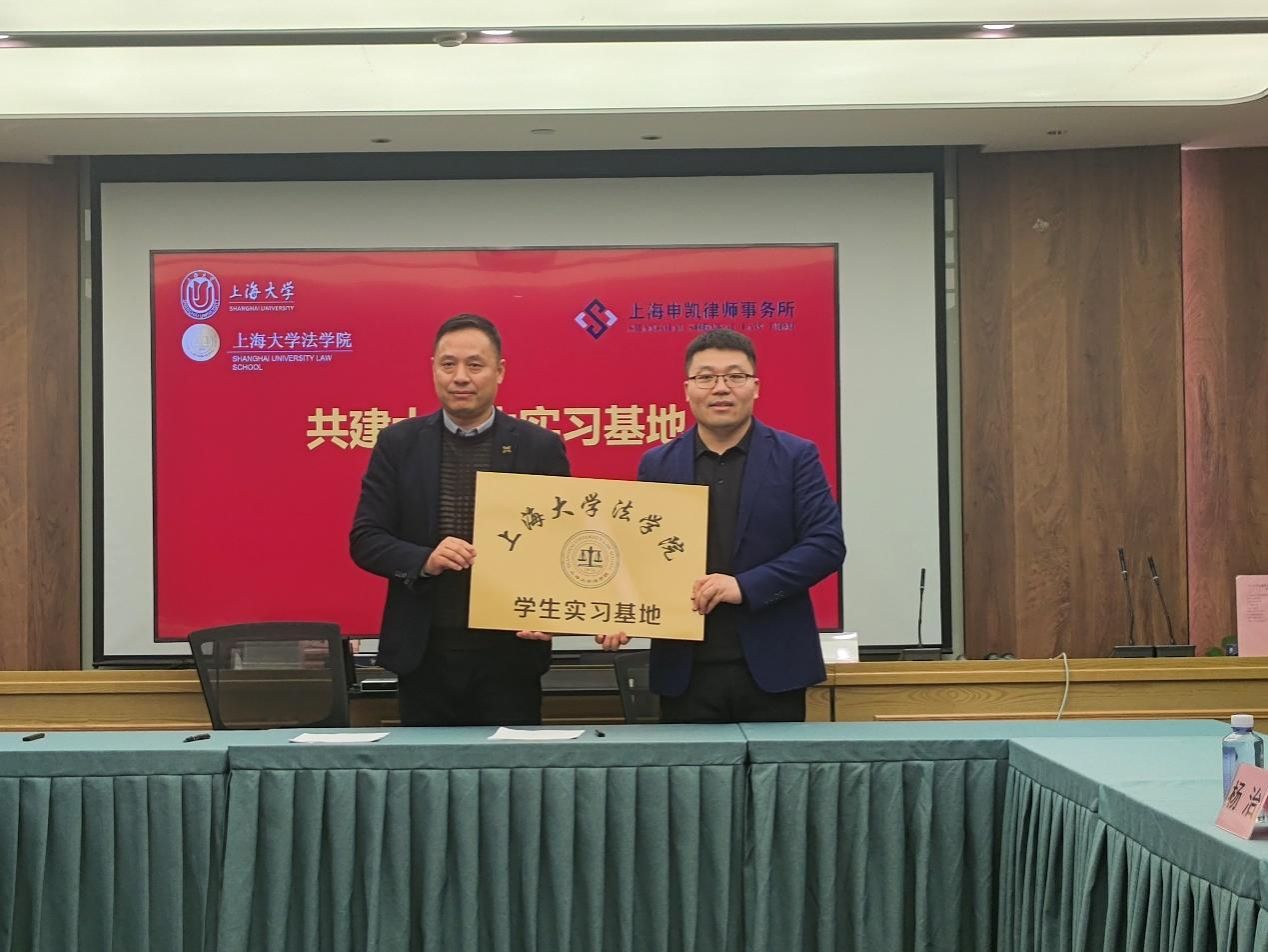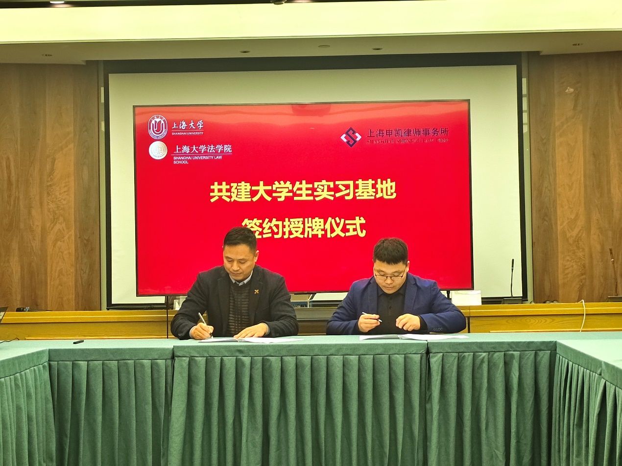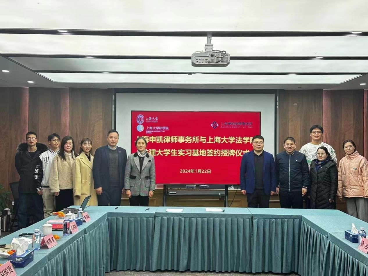 1月22日下午,诸侯快讯入口官网法学院与上海申凯律师事务所共建大学生实习基地签约授牌仪式在环上大科技园三楼会议室举行。上海宝山科技控股有限公司总经理、大场镇商会会长徐咏美,上海宝山科技控股有限公司办公室主任、大场镇商会常务副秘书长赵韵雯,上海申凯律师事务所主任高其彬、合伙人律师李璟璐、孙春龙,诸侯快讯入口官网组织人事部组织处主管杨治,诸侯快讯入口官网法学院党委副书记、副院长于伟和学生代表出席仪式,仪式由诸侯快讯入口官网法学院校友办副主任林建玲主持。