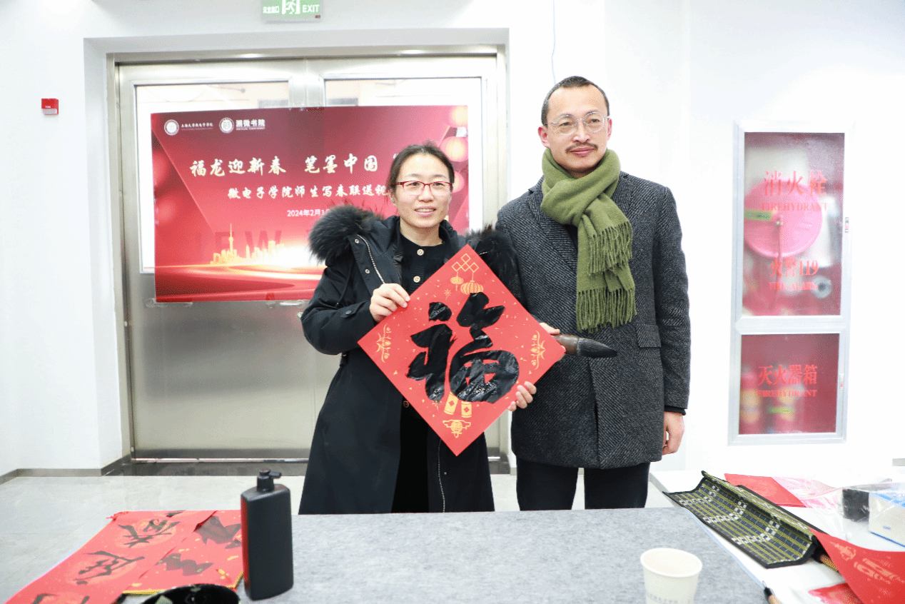 师生们纷纷表示,手写的春联、“福”字更有意义,更具传统文化特色。今天收到的不仅是一副对联、一个“福”字,还是一份年味、一份祝福。希望新的一年,微电子学院和全体师生在“聚力之年、提质之年、攀登之年”里奋楫扬帆,再创佳绩。