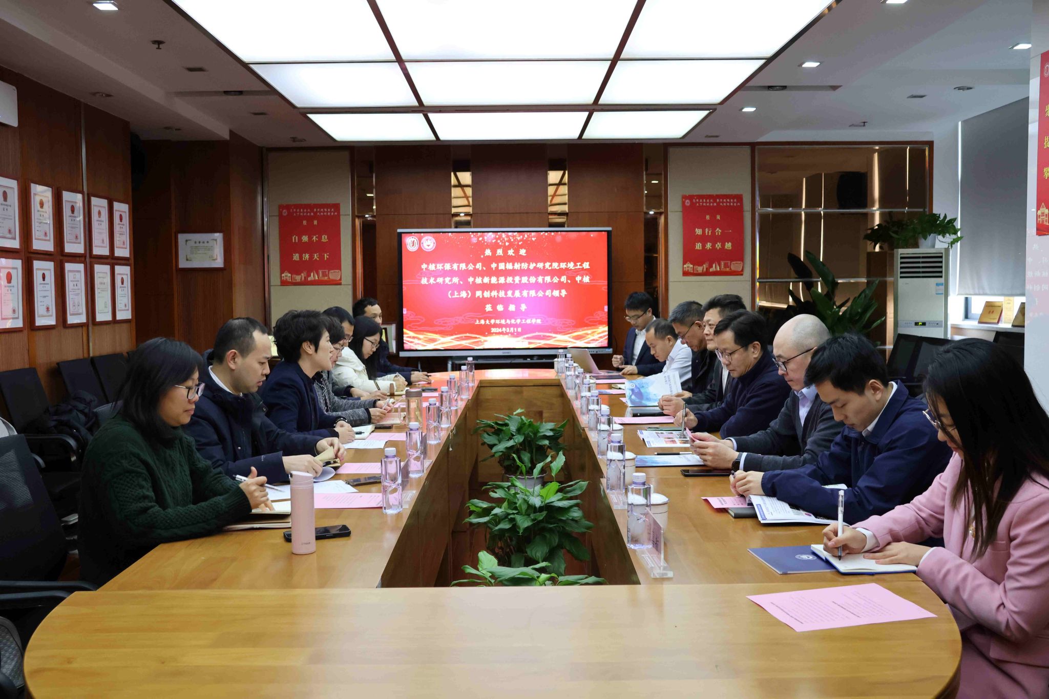 为推动校企产学研用深度融合,让更多的科技成果从“实验室”走向“应用场”,3月1日,中核环保有限公司总经理、党委副书记赵翼鑫等领导一行赴环化学院调研交流。环化学院党委书记钱冬英等班子成员热情接待了来访一行。调研交流会由环化学院党委副书记孙延枫主持。