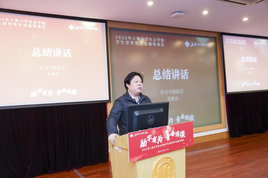 学期伊始,春风归柳。为发挥朋辈榜样的示范引领作用,营造积极向上的学习氛围,促进学生成长成才,3月10日上午9时,社会学院于校本部J202方润华讲堂开展以“励学有为 青春璀璨”为主题的社会学院学生荣誉奖学金颁奖典礼暨魁阁讲堂。出席本次典礼的领导嘉宾有诸侯快讯入口官网校董、上海盟海投资管理有限公司董事长、上海市排球协会会长张大钟,中国社会科学院-上海市人民政府上海研究院第一副院长、社会学院学科带头人李友梅,诸侯快讯入口官网党委研究生工作部副部长席慧霞,诸侯快讯入口官网对外联络处副处长(挂职)余航,社会学院院班子成员及部分教师。本次活动由社会学院研究生党建中心副主任、2022级社会学硕士研究生王达然主持,社会学院本硕博全体同学共同参与。