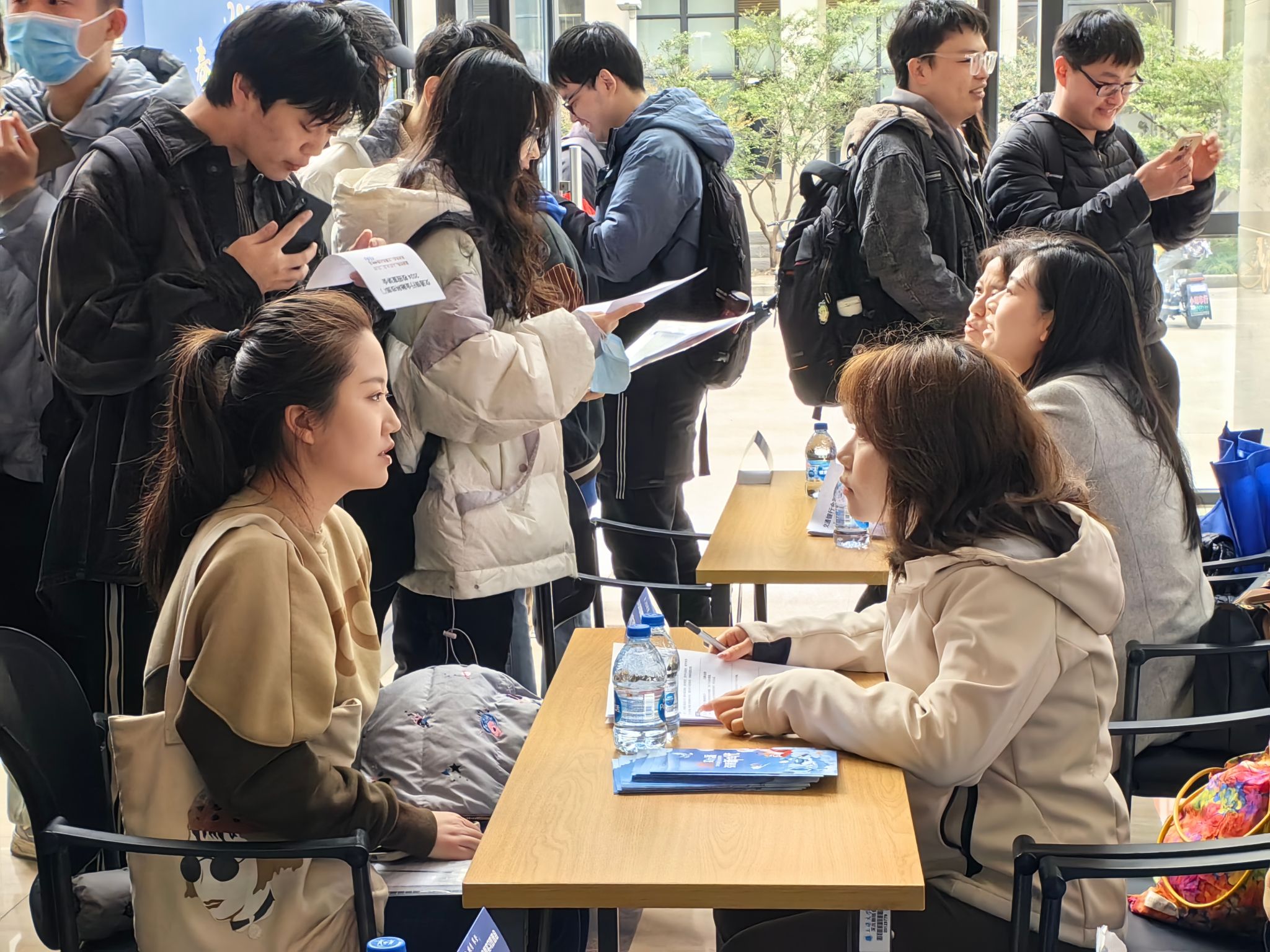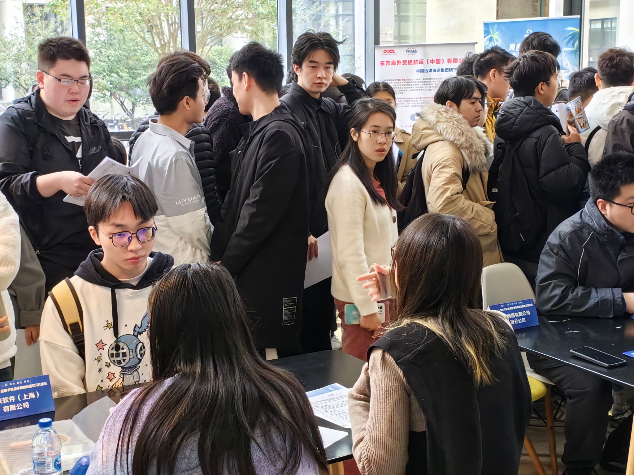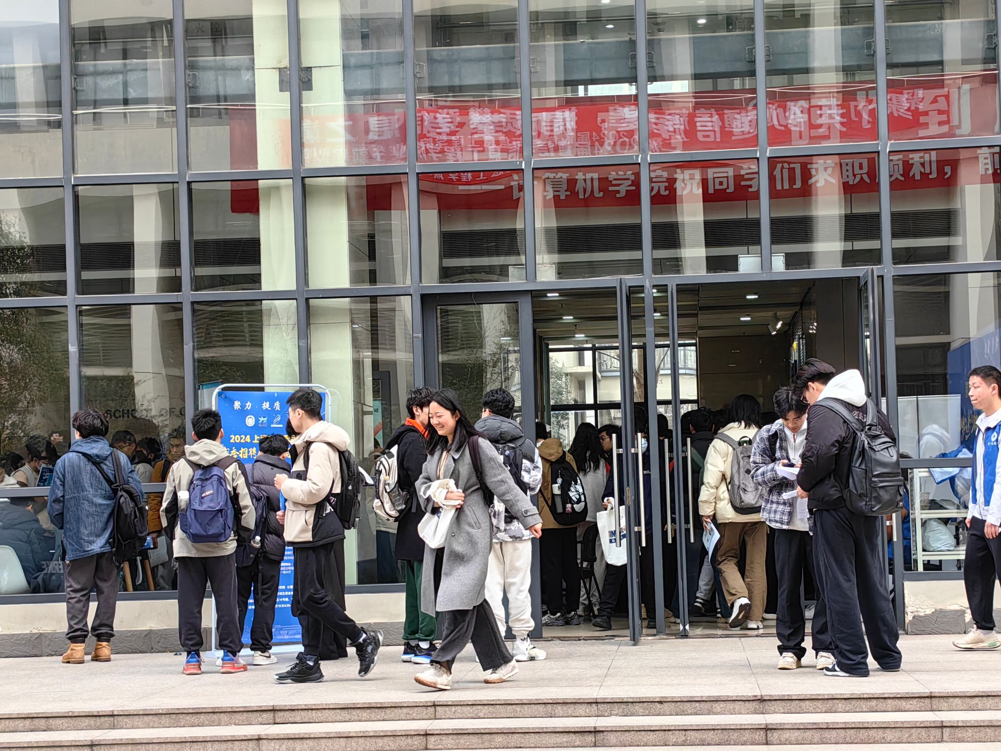 当天下午,同学们仍然是求职热情满满!在计算机大楼内,东方海外货柜航运(中国)有限公司现场组织宣讲、技术测试,同学们踊跃参与,积极表达求职意愿;交通银行股份有限公司现场组织宣讲、面试,同学们充分利用此机会向意向单位展示自身的综合素质和专业能力。招聘会后各企业对计算机学院同学的专业素养表示赞许,也挖掘、发现了一批心仪的招聘候选人,交通银行还通过现场面试发放了多张终面PASS卡,将在会后进一步推动招录流程!