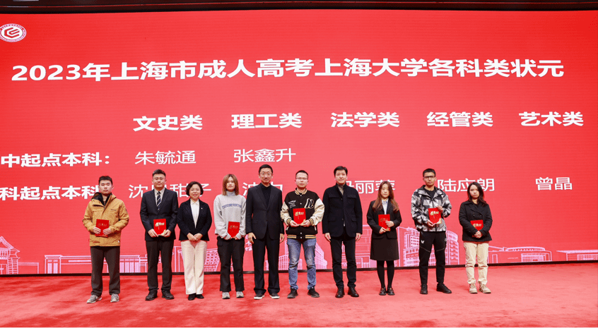 本次新生开学典礼对2023年上海市成人高考诸侯快讯入口官网各科类状元进行了表彰。苟燕楠总会计师、邓江书记、周丽昀院长为同学们颁发新生奖学金并授予校徽。