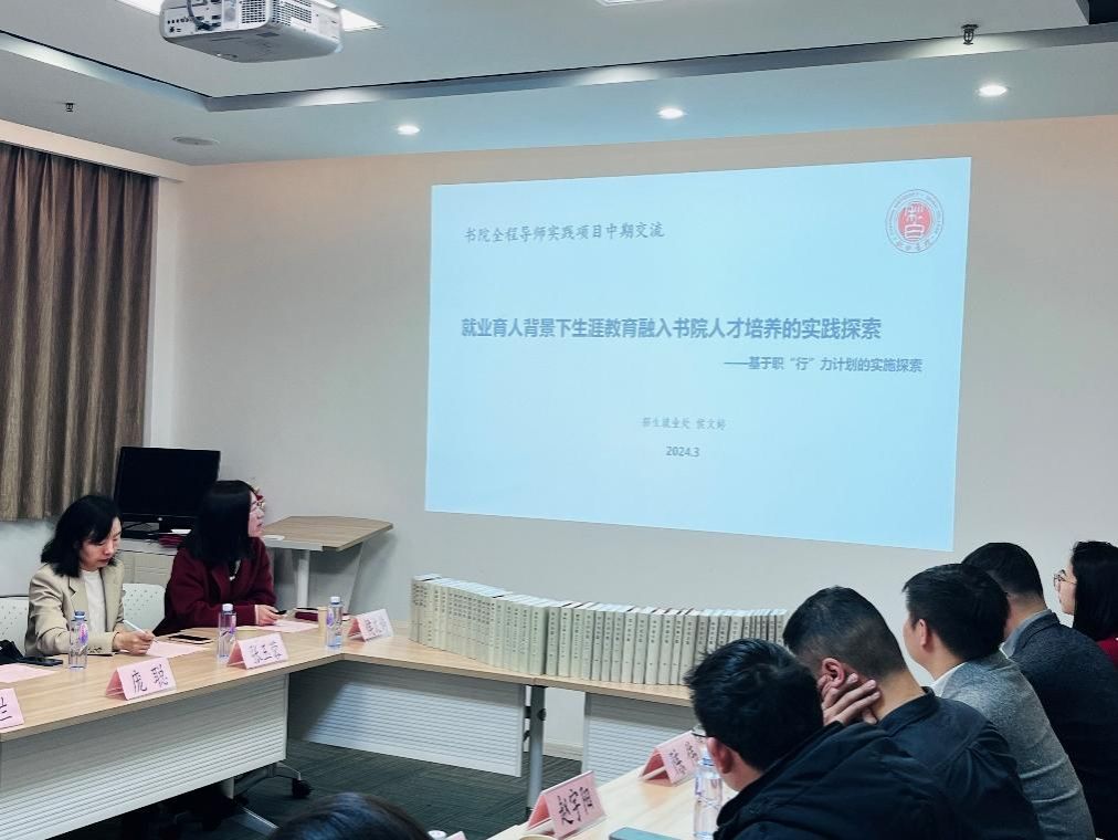 随后,秋白书院执行院长张乃琴对书院全程导师工作情况进行了简单的介绍。她谈到,希望可以通过夯实双院协同的书院办院特色,凝聚资深院长、全程导师等多元主体力量,将专业学科资源下沉学生一线场域,促进学生的全面发展。为此,秋白书院坚持聚焦“红色传承、经典阅读、实践育人”的书院特色,扎实推进全程导师进书院开展“五个一”系列活动,在推动学生党建、学业发展、科创实践、生涯规划等学生课外人才培养方面取得了初步育人成效。