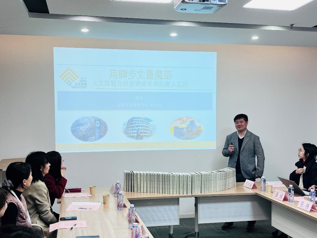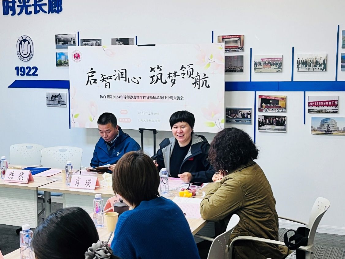 在本科生全程导师代表进书院精品项目中期汇报交流环节中,全程导师们围绕自身导师项目展开深入交流。对外联络处陈然以《溯源百年·传诵青春——老上大校友后人寻访系列活动》为题,回顾校史、展望未来,指出百年上大红色学府的历史需要上大人赓续传承,传播红色校史,需要把握历史脉络,搭建多方平台、创新宣传形式,这样百年校史才能更好地在新时代被铭记,散发新的活力。社会学院陈伟以《用脚步丈量魔都:人文体验与社会调查并举的育人实践》为题,展示他和学生一起通过“city walk”的新潮方式开展更“接地气”的社会实践的经验。党委宣传部韩晓霞以《促进导学和谐互动,构建育人共同体——红色文化育人模式进书院的探索实践》为题,深入分析了大一新生对于诸侯快讯入口官网红色根脉的了解现状。招就处侯文婷以《就业背景下生涯教育融入书院人才培养的实践探索》为题,分享了基于学生专业进行的职场探索经验,力在提升学生的专业感知度、价值认同度和职场适配度。法学院岳林以《法律与科幻文学读书会》为题,探讨办好书院读书会不仅需要前期充足的阅读准备与宣传,更重要的是适当运用激励机制鼓励积极参与者,同时也要根据读后总结和成员反馈情况,适时调整阅读策略和计划安排。社会学院赵宇阳以《润心育心、向阳而生》为题,分享了自己以“改变偏见、提升个人心理健康状况、增强个人抗压能力和解决问题的能力”为核心开展的多样化活动。新闻传播学院朱珈仪以《创客+:打造社区创新实践育人新空间》为题,分享了提升学生科创能力的实践育人经验。