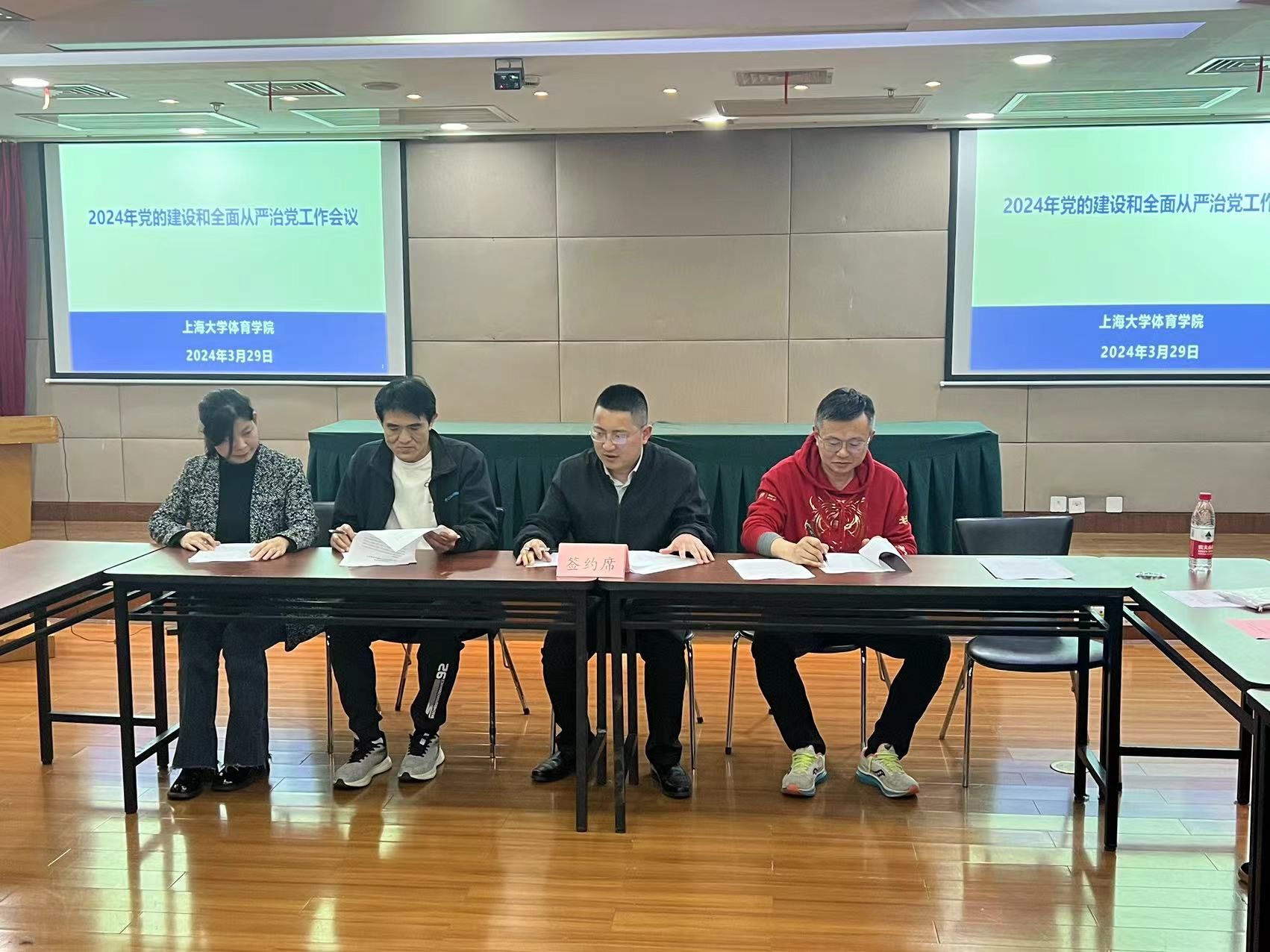 为深入学习贯彻习近平总书记在二十届中央纪委三次全会上的重要讲话精神,认真落实学校第二十八次党的建设工作会议暨2024年全面从严治党工作会议要求,部署学院党建重点工作,以高质量党建引领保障学院高质量发展,3月29日,体育学院召开2024年党的建设和全面从严治党工作会议。学院党政班子成员、党委委员、各党支部书记、办公室主任和组织员参加会议。会议由学院党委书记许烁主持。