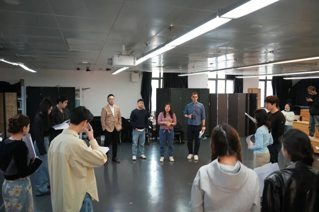 一切还是要回到角色塑造。乔纳森让同学们进行一个小训练,在时快时慢的穿行中,找到属于自己的路径,从混乱中寻找秩序,集中注意力,获得内心感知。随后让同学们两两组合排演对白。在一遍遍引导中,乔纳森帮同学们把握角色个性,梳理人物关系,解读台词内在逻辑。同学们的每一遍诵读,都带着更深层的理解,逐渐进入莎士比亚的世界。