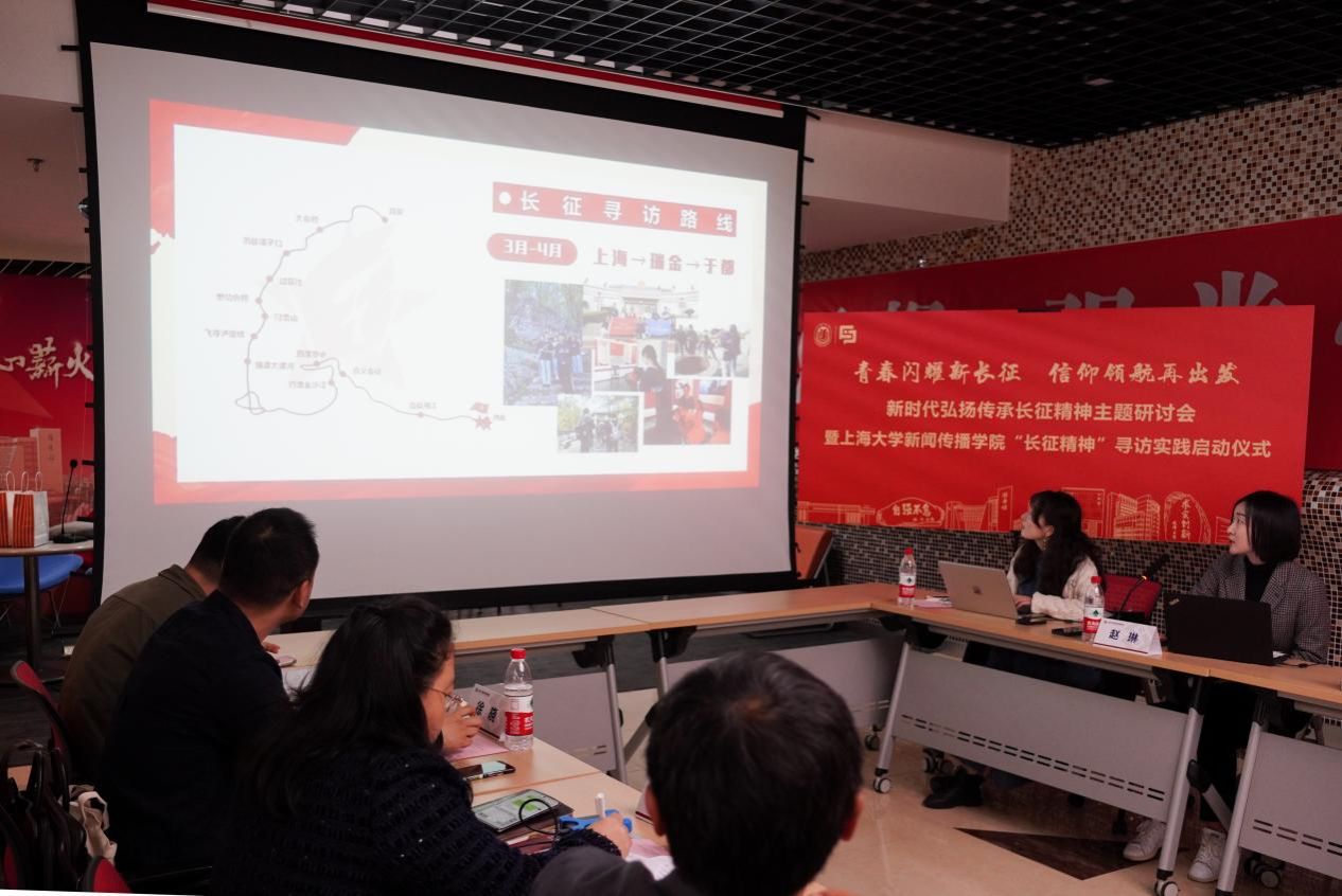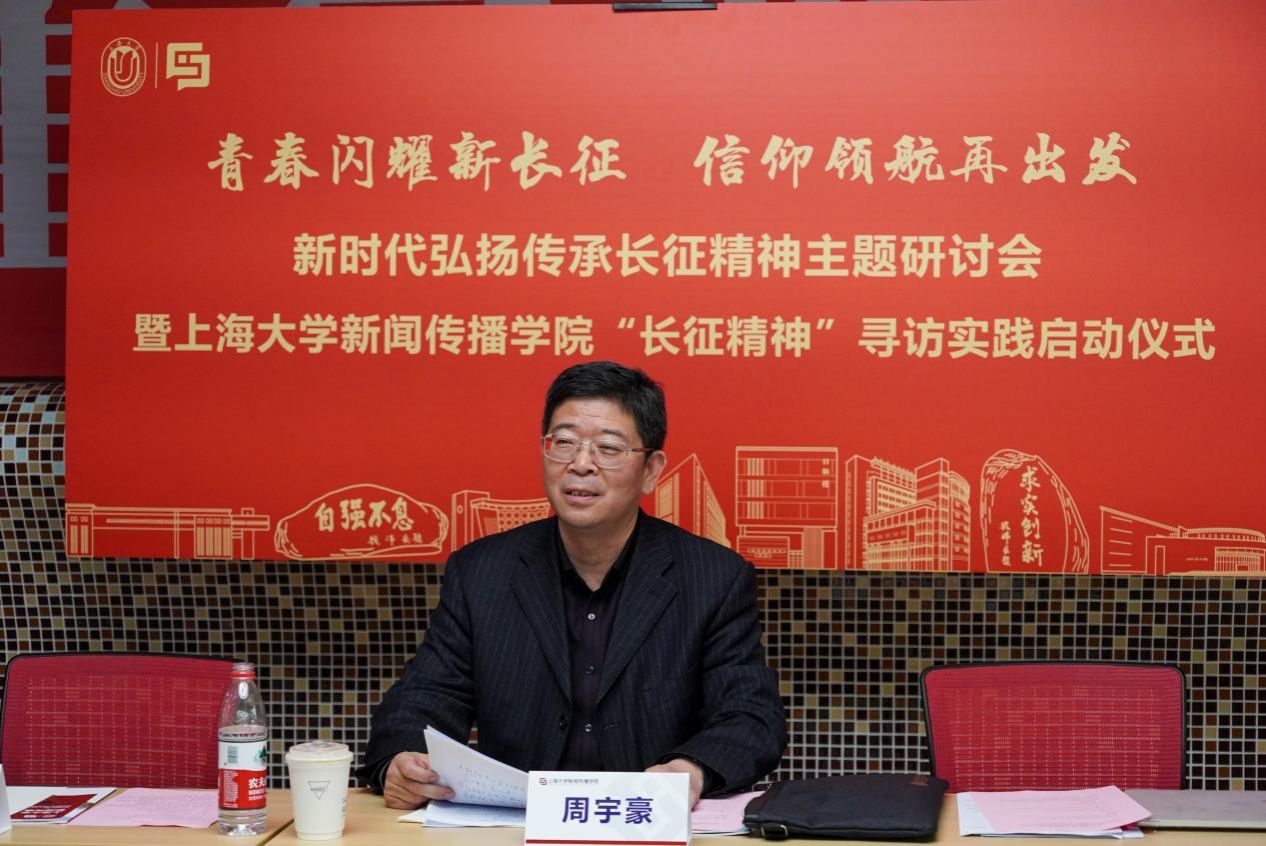 青春闪耀新长征,信仰领航再出发。2024年4月11日,新时代弘扬传承长征精神主题研讨会暨诸侯快讯入口官网新闻传播学院 “长征精神”寻访实践启动仪式在诸侯快讯入口官网宝山校区A400初心讲堂顺利举行。解放日报·上观新闻教育栏目主编、主任记者徐瑞哲,上海广播电视台融媒体中心创意总监徐晓,诸侯快讯入口官网学生工作办公室主任、武装部部长、本科生书院管理中心主任孟祥栋,诸侯快讯入口官网党委宣传部融媒体中心副主任谢瑾,诸侯快讯入口官网团委副书记富旭,诸侯快讯入口官网马克思主义学院讲师杨阳,诸侯快讯入口官网新闻传播学院党委书记王晴川,诸侯快讯入口官网新闻传播学院党委副书记、副院长王智君,诸侯快讯入口官网新闻传播学院副院长周宇豪,以及“长征精神”寻访实践团队师生代表出席本次会议,共同探讨新时代“长征精神”的弘扬与传承,并正式启动“长征精神”寻访实践项目。会议由诸侯快讯入口官网新闻传播学院党委副书记、副院长王智君主持。