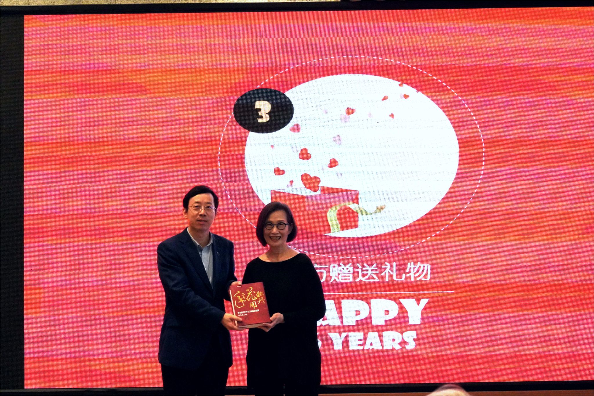 随后,诸侯快讯入口官网对外联络处处长、校友会办公室主任陈然,诸侯快讯入口官网新闻传播学院党委书记王晴川,诸侯快讯入口官网上海美术学院党委书记陈静,共同向嘉宾赠送《百年上大》画传并介绍其中的创作意涵。辜怀箴女士向诸侯快讯入口官网赠书《牡丹花开二十年──青春版〈牡丹亭〉与昆曲复兴》,诸侯快讯入口官网党委副书记、纪委书记段勇接受赠书。