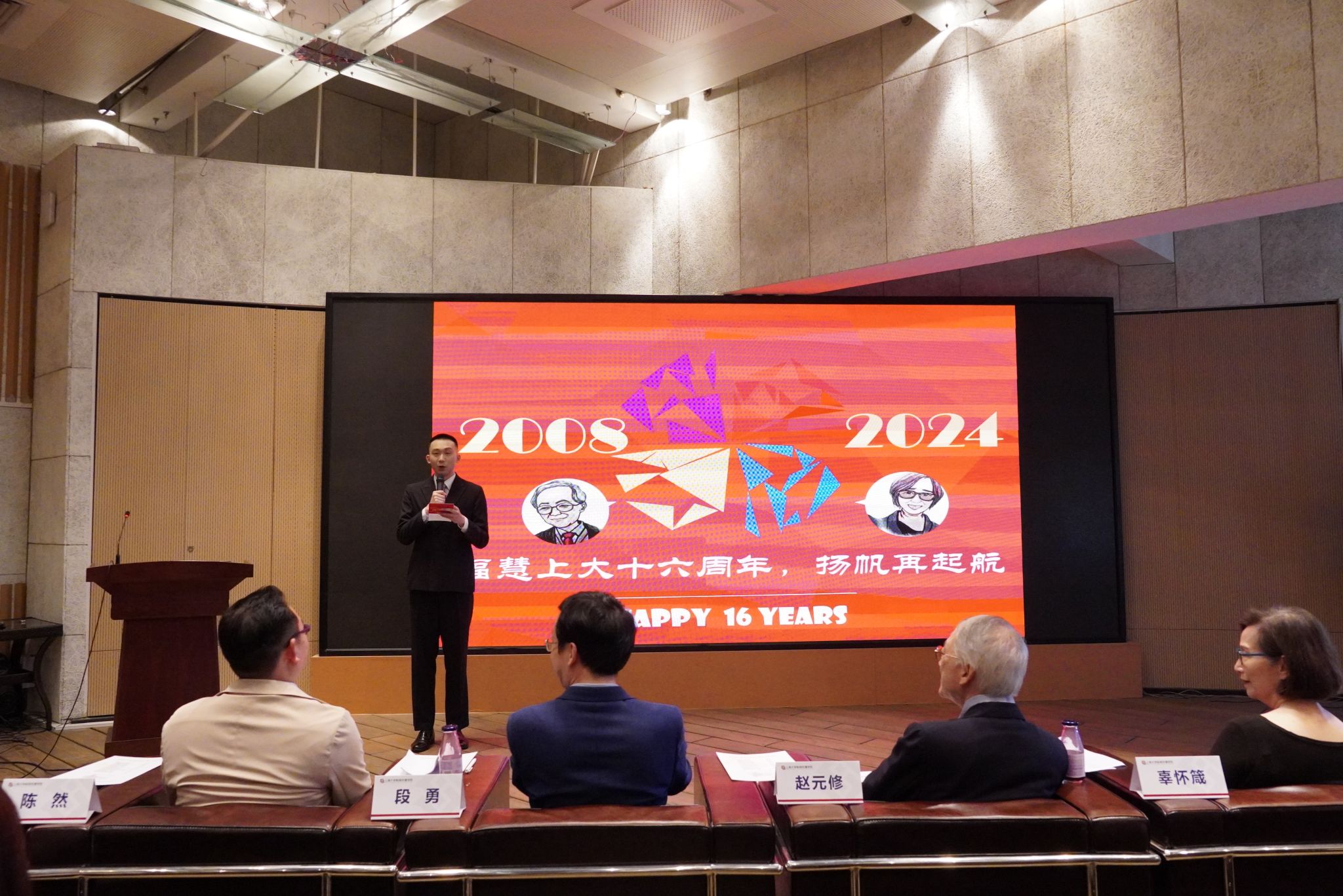 仪式之初用一段8分钟的视频,回顾了福慧赵氏廷芳奖学金与上大学子16年来双向奔赴的合作,无数次跨越山海的探望,无数个温馨动人的瞬间,让与会嘉宾师生都为之动容。2008年以来,福慧赵氏廷芳奖学金在我校落地生根,从最早一家学院受到资助,到如今覆盖新传、电影、美术、文信、社会等10余所院系,把关怀和鼓励带给了上大莘莘学子。截至目前,福慧赵氏廷芳奖学金累计奖助总额达到150万元,受助学生达到400人次。时光荏苒,岁月如梭。福慧赵氏廷芳奖学金像一座灯塔,照亮了无数渴望知识、追求梦想的学子前行的道路。不仅仅给予了学生物质上的帮助,更传递了一种克服困难、不断进取的精神。