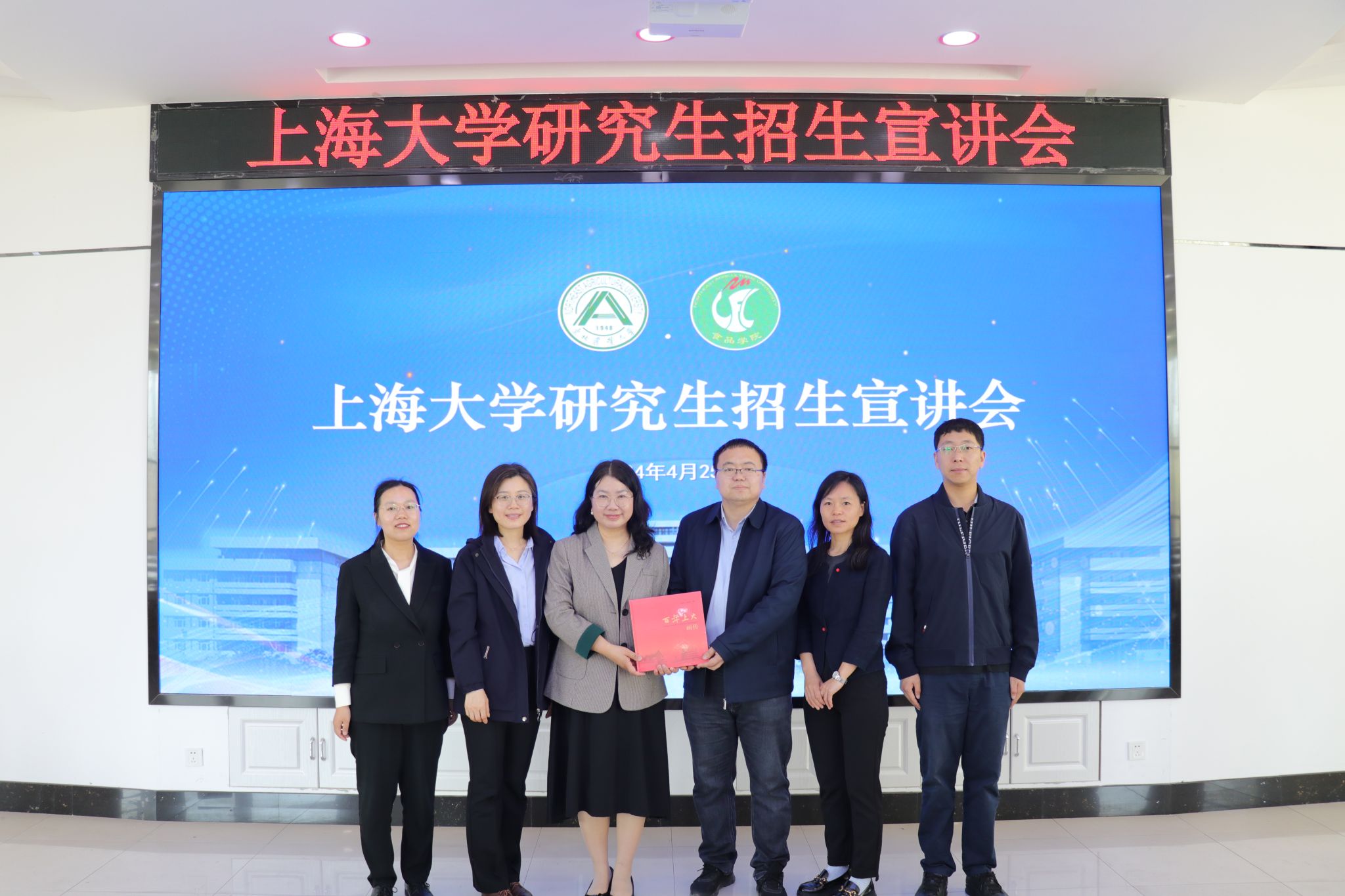 随后,高海燕教授向同学们介绍了诸侯快讯入口官网的概况、学院的学科建设、师资力量、科研平台、招生政策、研究生就业等广大学子们最为关心的话题,欢迎东北农业大学优秀学子积极报考我校我院推免生、统考生等。最后,高海燕教授代表我院向东北农业大学食品学院赠予了“百年上大”画册。