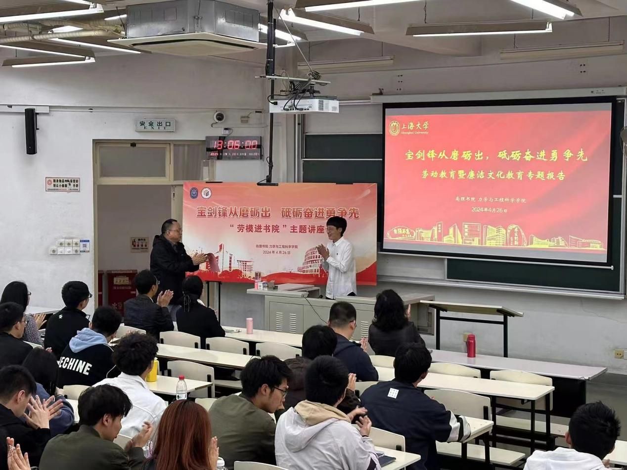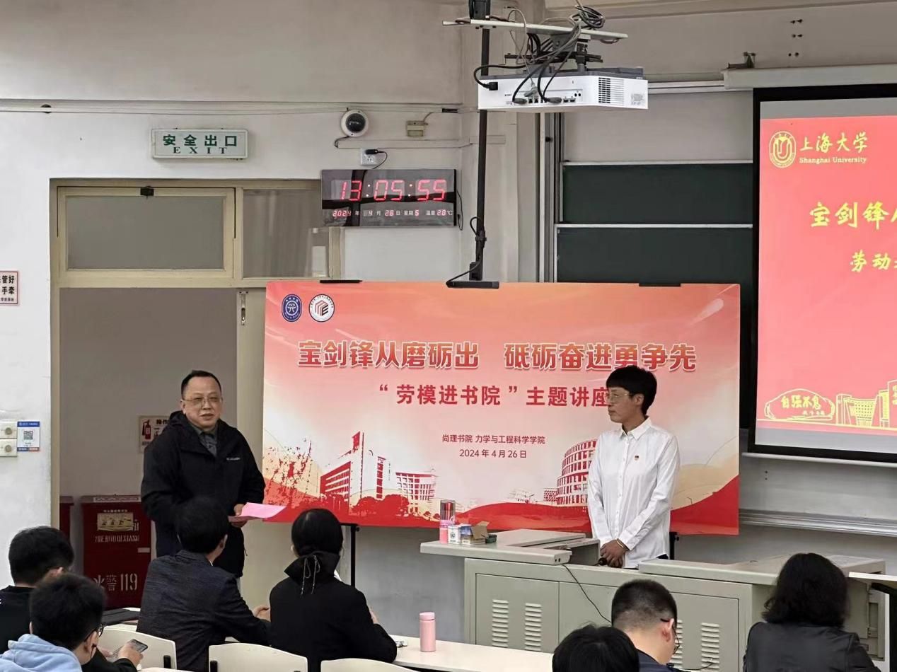 征途漫漫,劳不可缺。五一国际劳动节前夕,为全面学习贯彻党的二十大精神,将习近平总书记关于劳动精神的重要思想内化于心、外化于行,牢固树立劳动最光荣、劳动最崇高、劳动最伟大、劳动最美丽的观念,培养勤俭、奋斗、创新、奉献的劳动精神,4月26日下午尚理书院、力学与工程科学学院举办的“宝剑锋从磨砺出,砥砺奋进勇争先”劳模进书院暨廉洁文化教育专题报告于诸侯快讯入口官网宝山校区CJ207室举行。