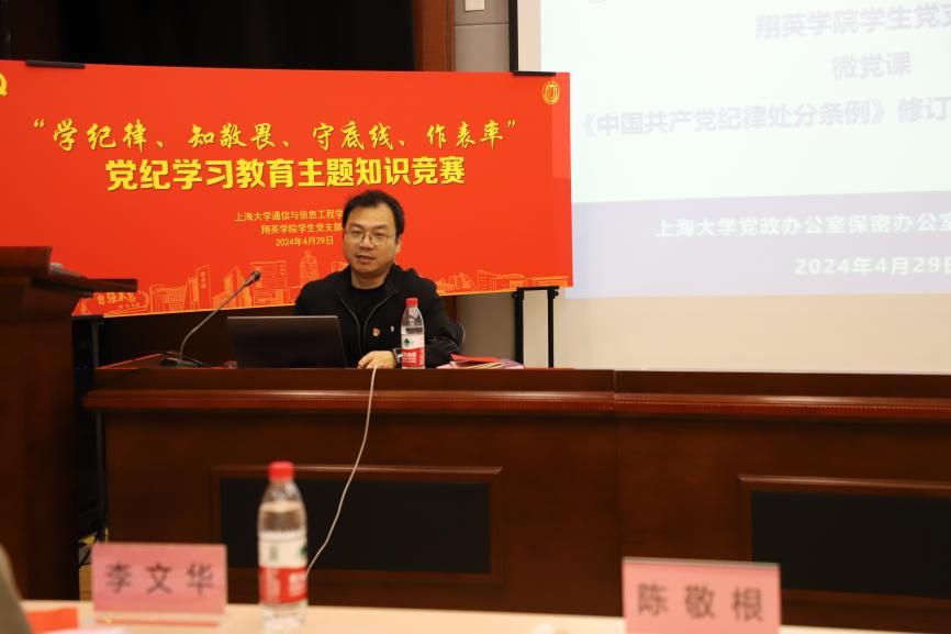 为贯彻落实党中央、市委和市教卫工作党委关于开展党纪学习教育的部署,按照校院党委总体安排,4月29日,翔英学院学生党支部组织全体本科生党员开展“学纪律、知敬畏、守底线、作表率”党纪学习教育主题知识竞赛。来自支部党员、入党积极分子组成共6支队伍现场同台竞技,通过个人抢答、组内抽答、团队攻擂等多个特色环节,以生动、多元形式深入学习党规党纪。诸侯快讯入口官网党政办公室副主任、法律事务办公室主任陈敬根老师、诸侯快讯入口官网通信学院党委副书记、副院长陈涛老师、翔英学院学生党支部书记李文华老师、翔英学院辅导员严思远老师等出席参与本次活动,与在场学子共学党规党纪。