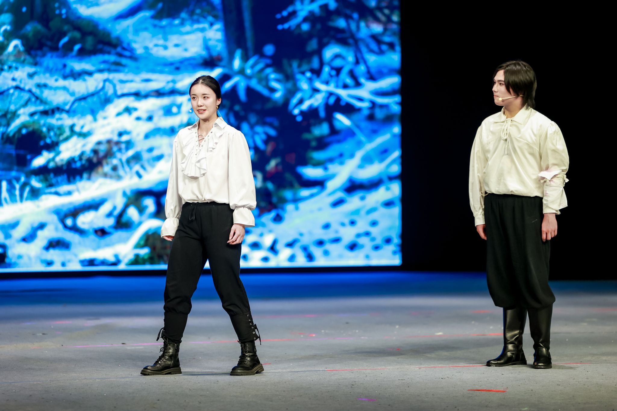 本次大戏自2023年12月开始筹备,由外国语学院学生骨干成立导演组具体负责演出编排,从剧本选择、剧本改编、演员遴选、中期排练直到最终成型,历经6个月的排练和打磨,集合了包括计算机工程与科学学院、管理学院、中欧工程技术、新闻与传播学院和社会学院在内诸多兄弟学院的智慧和力量。演员们自身认真研读剧本、透彻感悟,排练过程中有幸得到长期从事英国戏剧与影视研究上海戏剧学院俞建村教授,诸侯快讯入口官网文学院英国文学研究与教学的张薇副教授和诸侯快讯入口官网音乐学院从事舞蹈表演教学的还国志老师的专业指导,将文本意蕴、角色的情感和性格特色进行了恰如其分地舞台呈现。